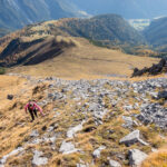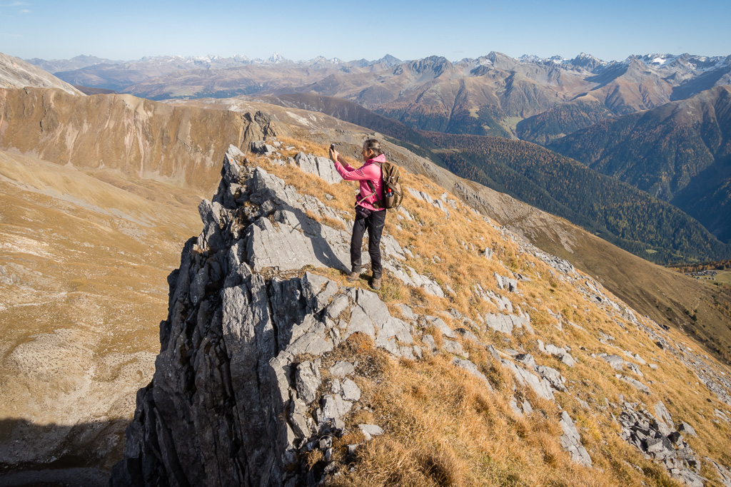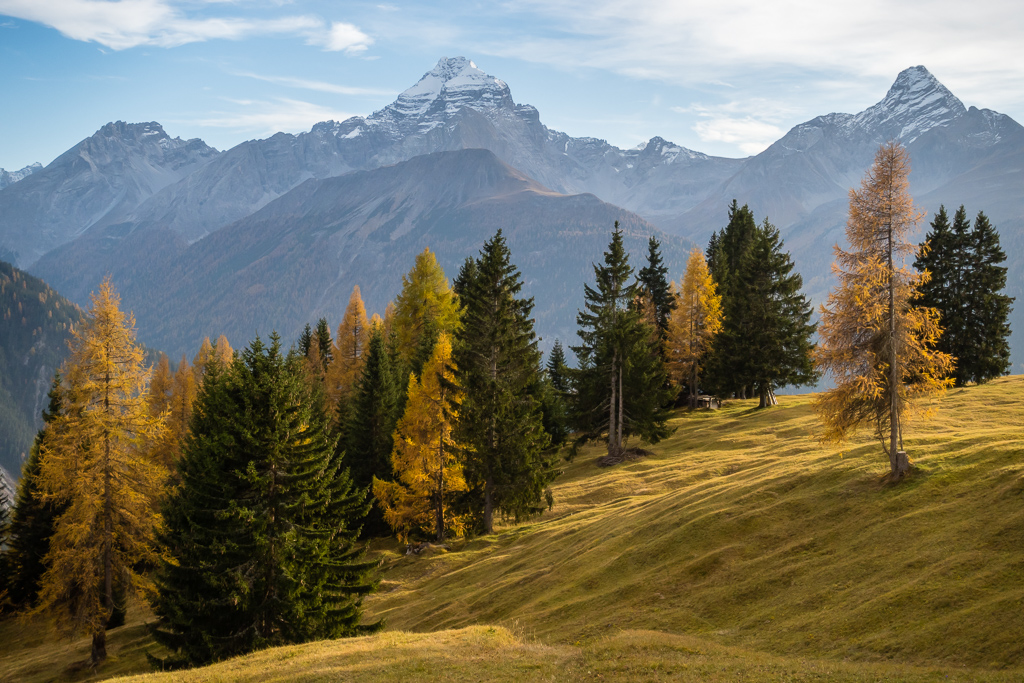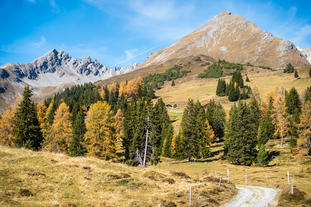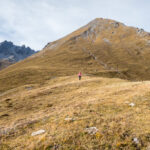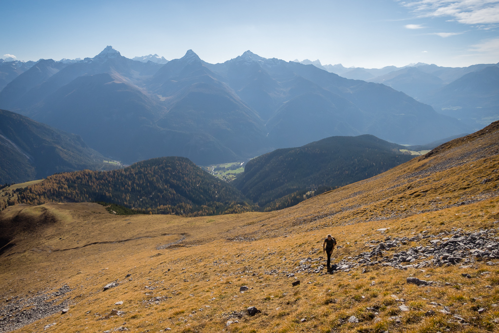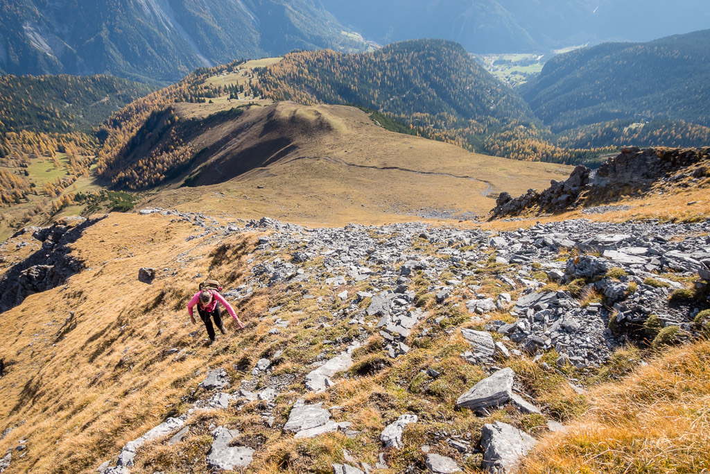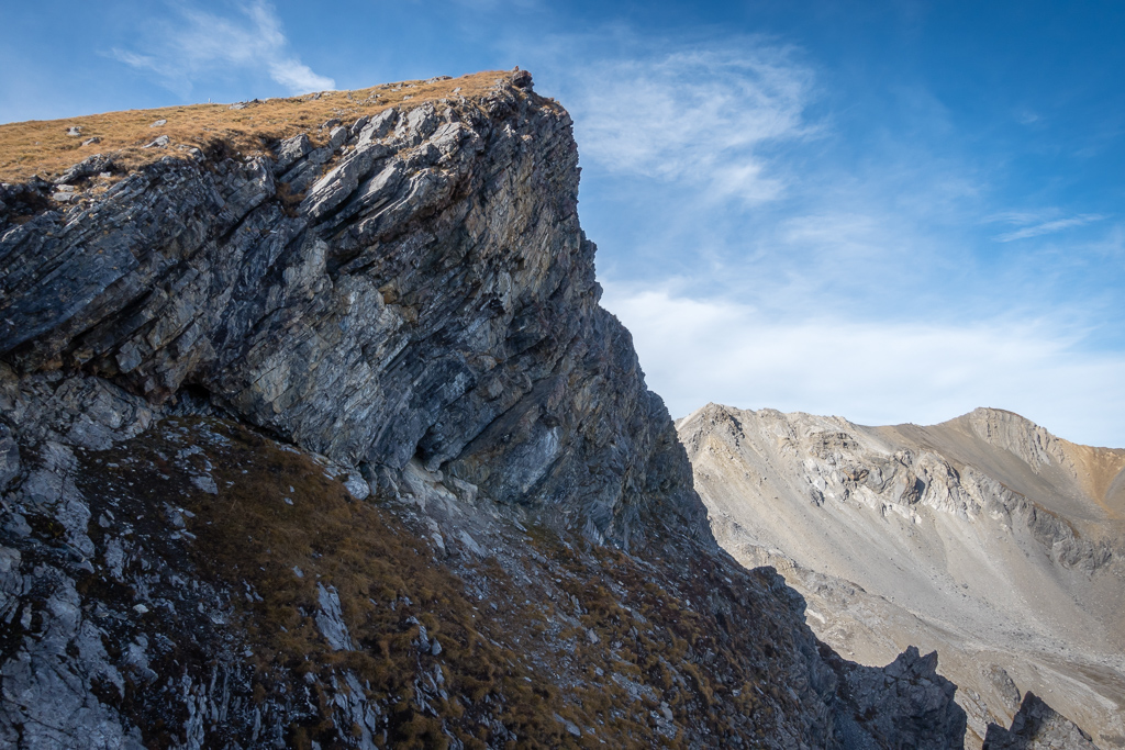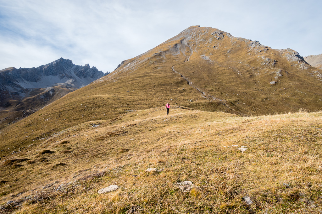Zum Hübel (oder direkt zur östlichen Kante) gelangt man über einen Grashang auch von der Alp Martrüel aus, falls man von Davos-Wiesen und der Wiesner Alp her aufsteigt.