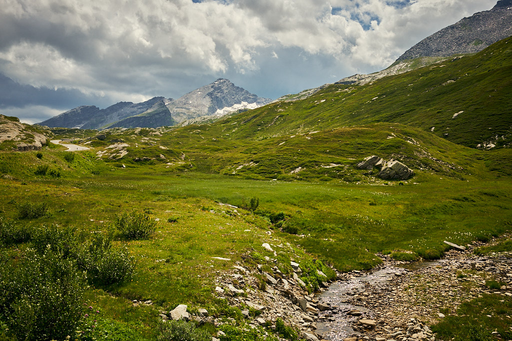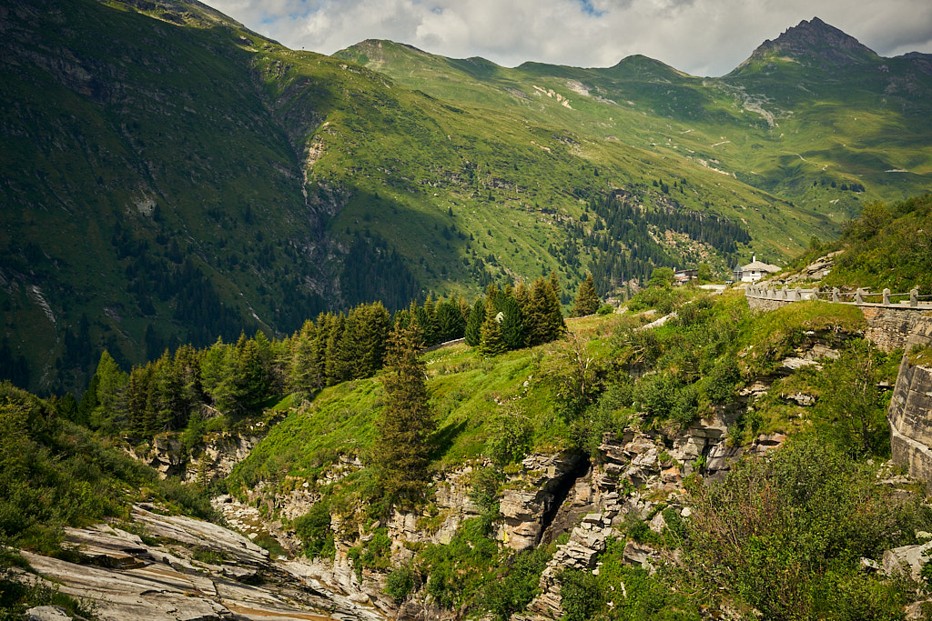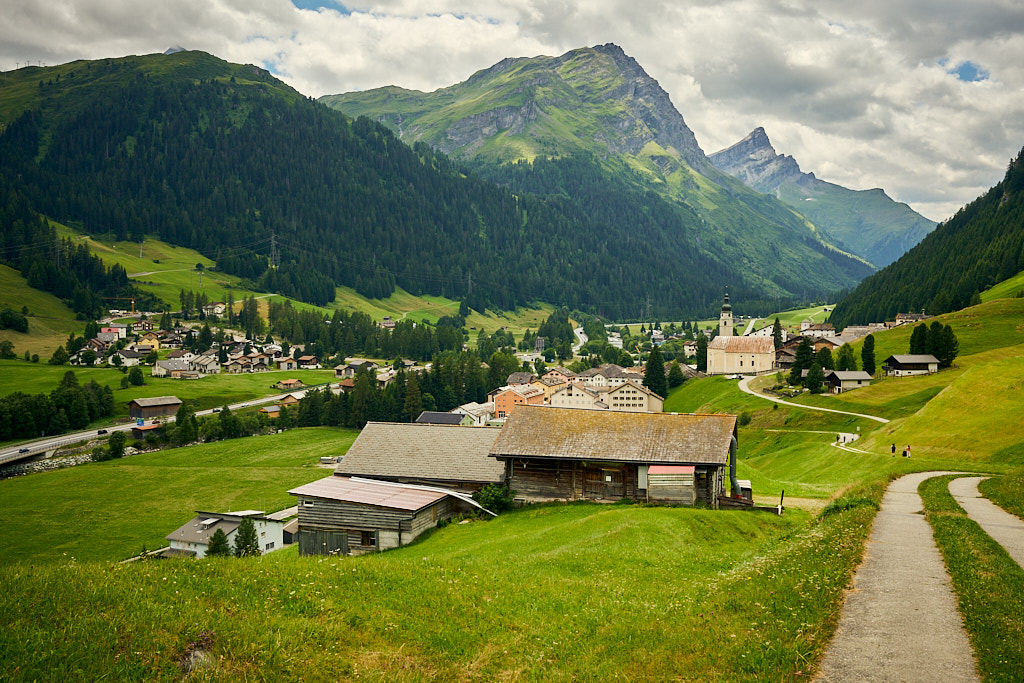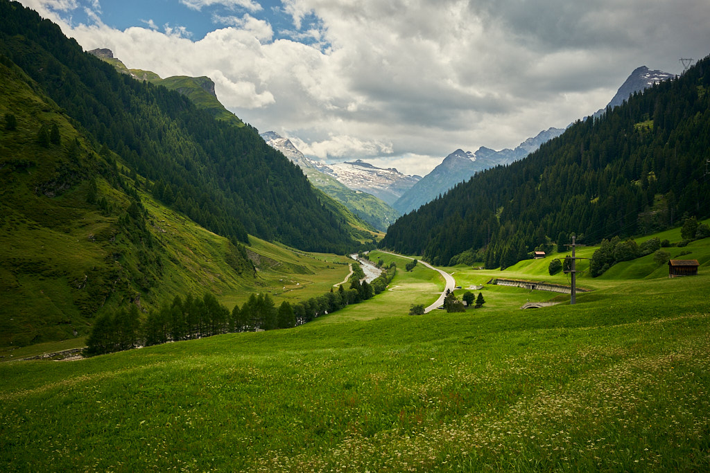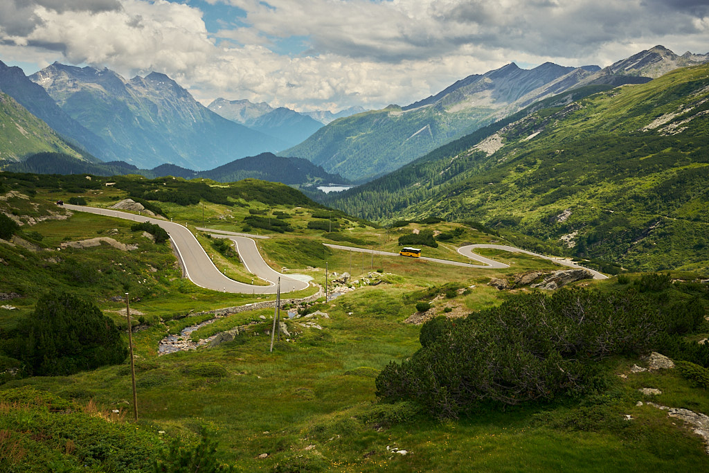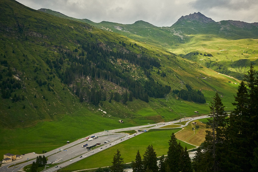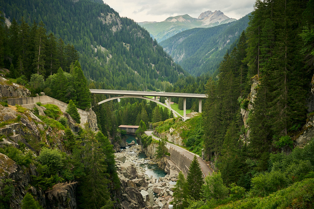 Von Splügen fuhr ich auf der Strasse nach Medels weiter und bog dort erneut auf einen Waldweg ab. Auf der anderen Seite des Hinterrheins ging es weiter nach Nufenen, wo mitten im Wald ein grösseres Openair-Festival gerade im Aufbau war. In Nufenen überquerte ich einmal mehr den Hinterrhein und fuhr am Hang entlang auf einem Nebenweg nach Hinterrhein (dem Dorf). Hier begann der kurvenreiche Aufstieg zum Bernardinopass.