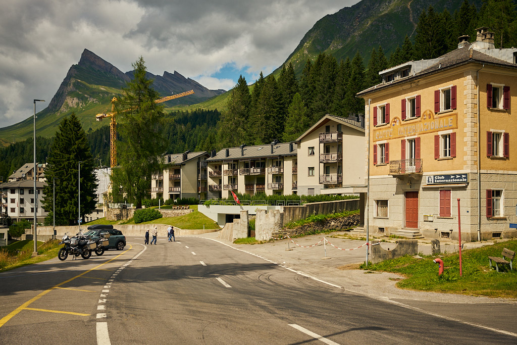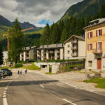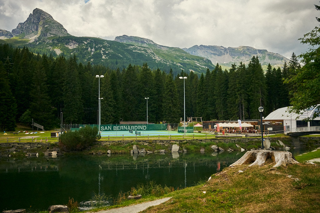 In San Bernardino angekommen, drehte ich noch eine kleine Runde durchs Dorf. Rege Bautätigkeit, zahlreiche Strassencafés und emsiges Treiben am Sportzentrum und See deuteten darauf hin, dass es mit dem Dorf wirtschaftlich wieder aufwärts zu gehen scheint. Ich überlegte mir noch kurz, weiter nach Bellinzona zu fahren. Angesichts des regen Reiseverkehrs und der Uhrzeit war mir heute dann aber doch nicht danach, sodass ich stattdessen wieder in Richtung Passhöhe zurückfuhr. Dies war meine erste Fahrt zum Bernardinopass von Süden her. Ich fand den Anstieg von dieser Seite dank ähnlicher Steigung und Höhenunterschieden aber zum Glück nicht schwieriger als die Variante von Norden.