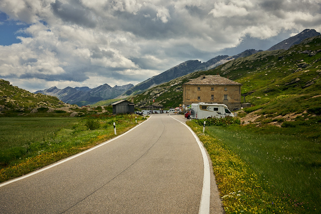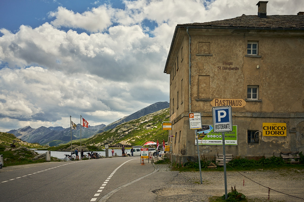 Bis zur Passhöhe waren von hier aus nur noch rund 500 Höhenmeter bei angenehmer Steigung zu bezwingen. Der Pass war heute bei weitem nicht so überlaufen wie beim letzten Mal. Ich fuhr anschliessend auf der Südseite hinab nach San Bernardino Dorf. Die zahlreichen Grashügel und Aussichtspunkte entlang der Passstrasse, auf denen sich beim letzten Mal die Leute tummelten, waren heute praktisch menschenleer.