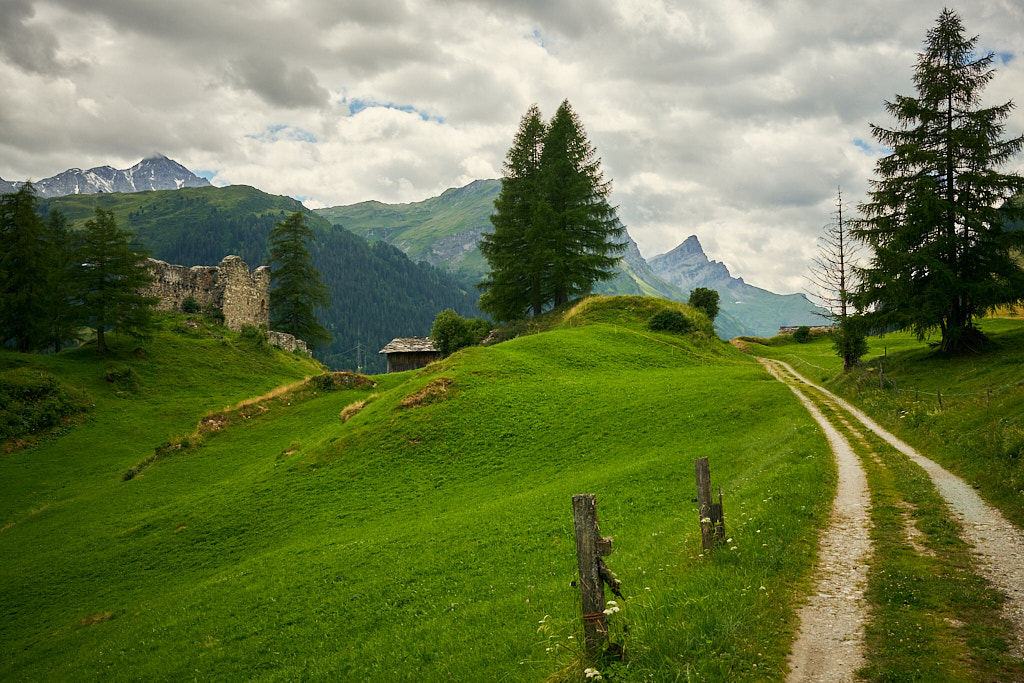Den San Bernardino-Pass hatte ich letztmals vor fast einem Jahr besucht. Höchste Zeit also für einen neuen Versuch. Diesmal startete ich allerdings nicht in Splügen, sondern erreichte das Hinterrheintal von Zillis durch die Roflaschlucht, um einige Kilometer und Höhenmeter mehr zu sammeln. Von Sufers aus ging es dann einem Waldweg hoch über der Autobahn und an einer Burgruine vorbei nach Splügen. Diesen Wegabschnitt hatte ich bei meiner letzten Tour zum Splügenpass entdeckt.