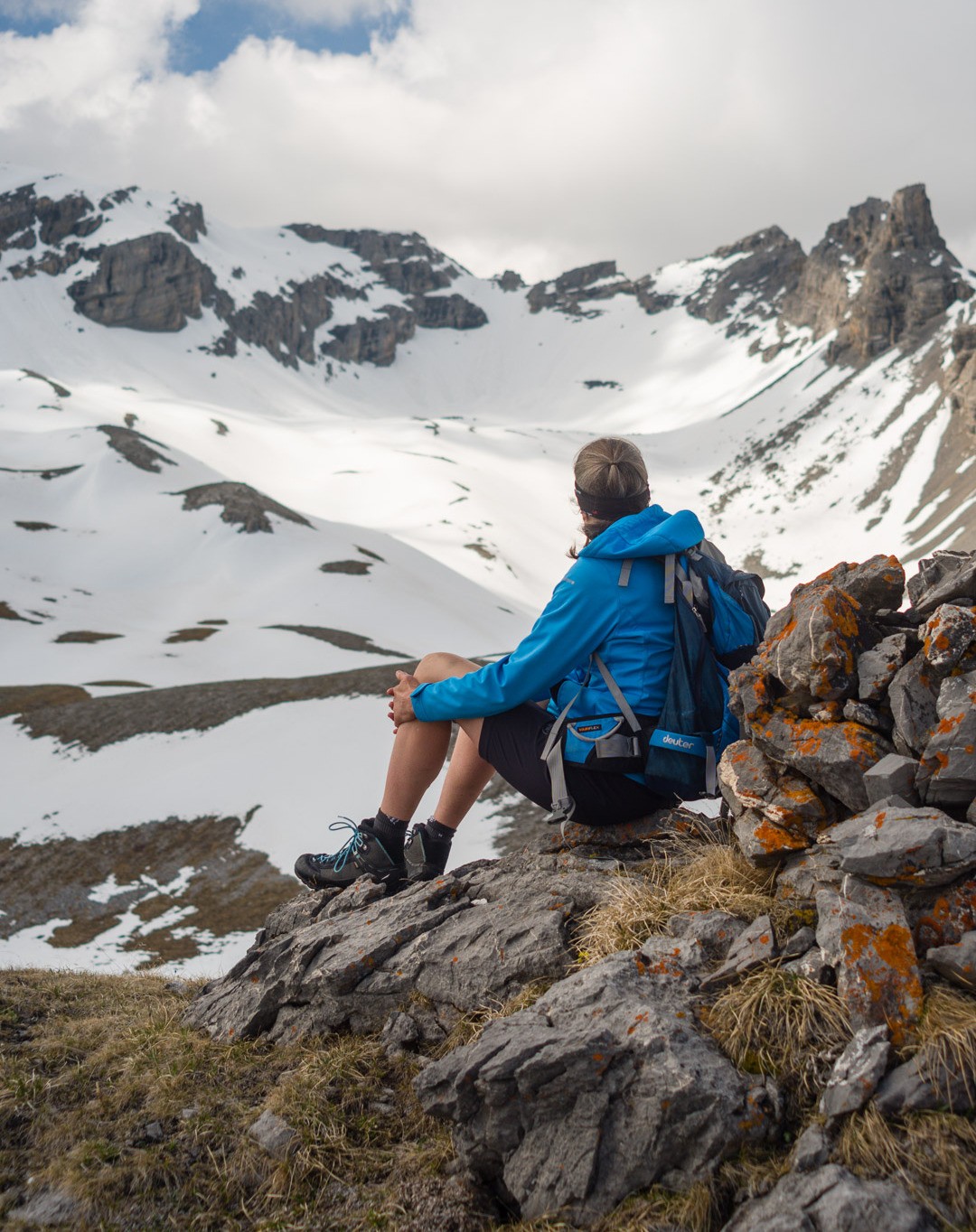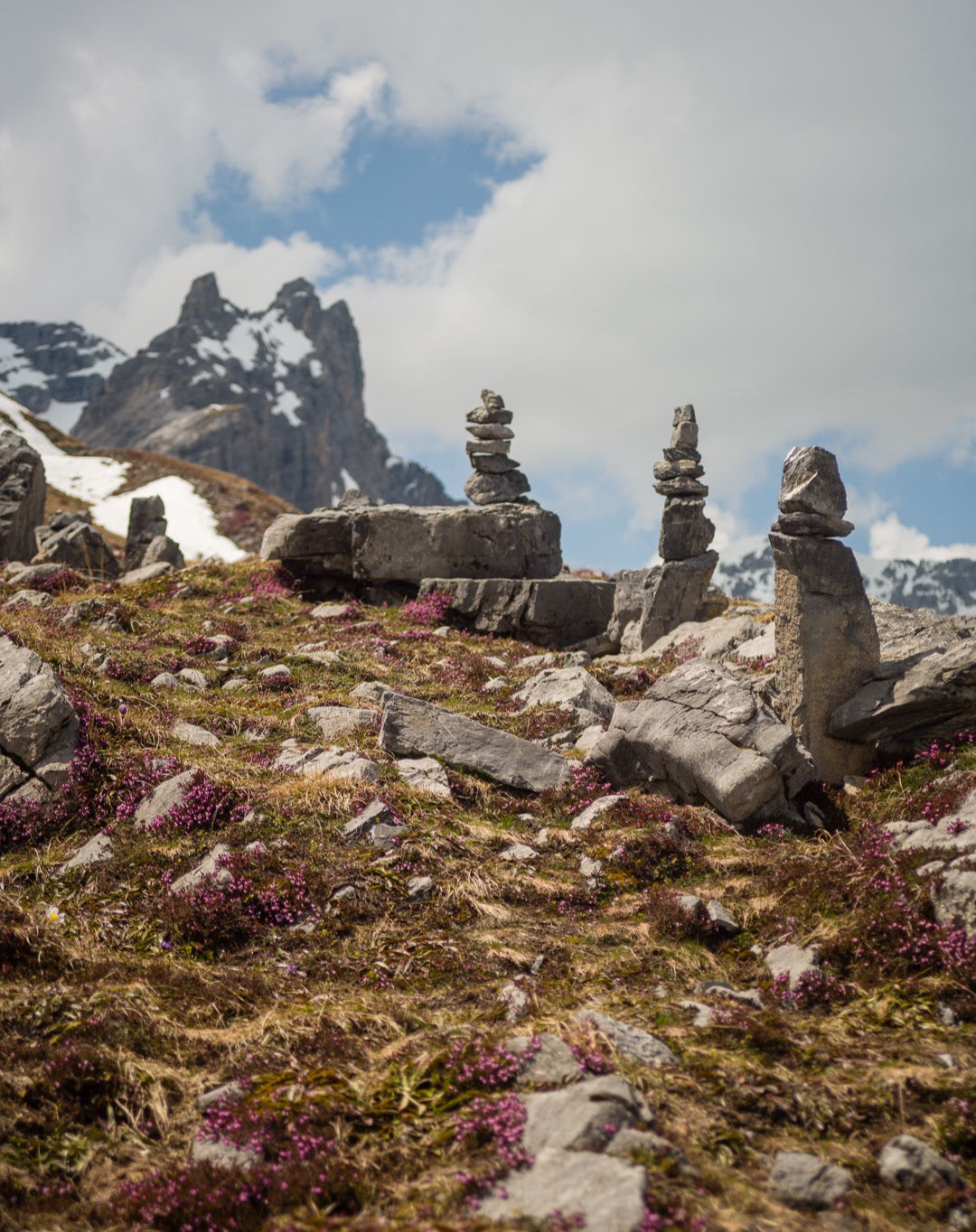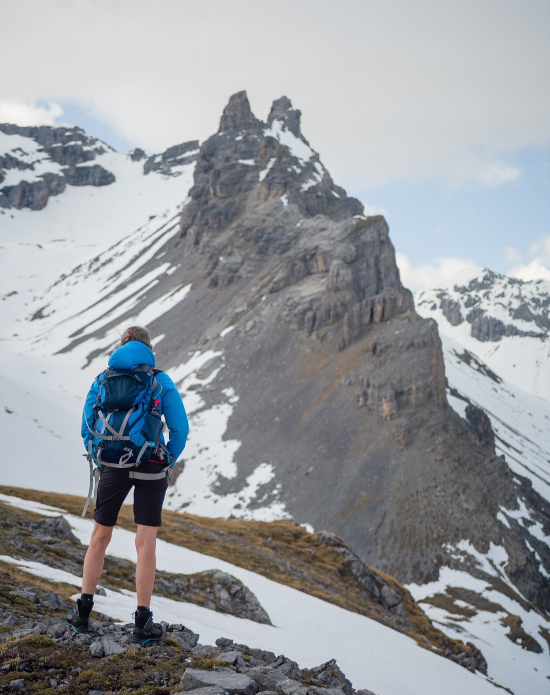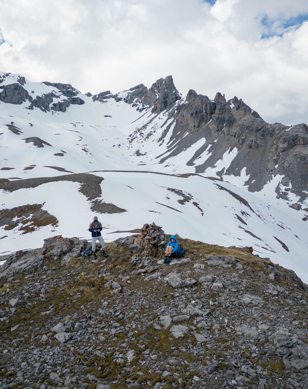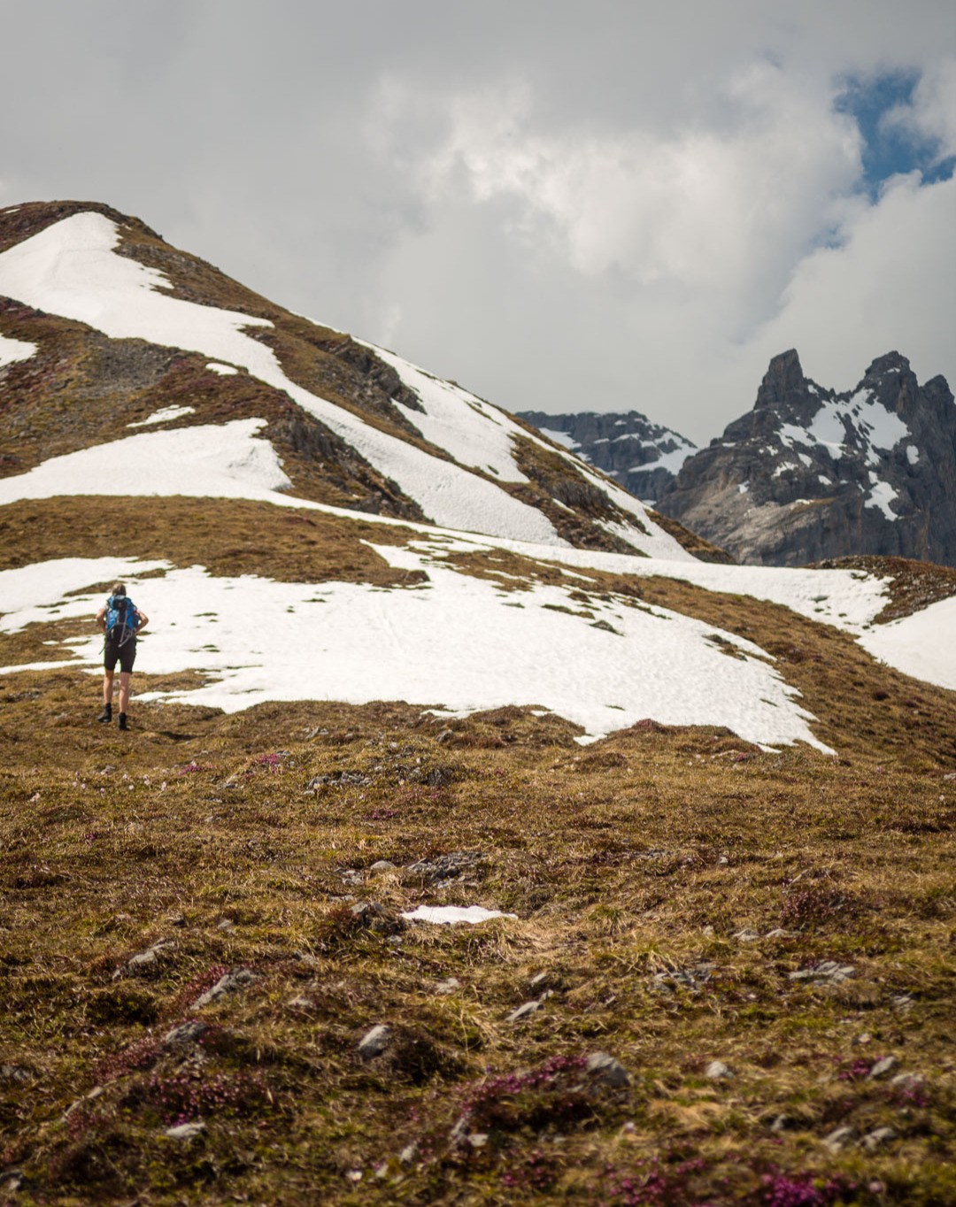 Von Davos Ortolfi über die Bärenalp zum Augstberg, einem Aussichtspunkt unter den eindrücklichen Felszacken und -wänden von Amselflue und Amselturm. Eisige Windböen dort, wo noch viel Schnee liegt.