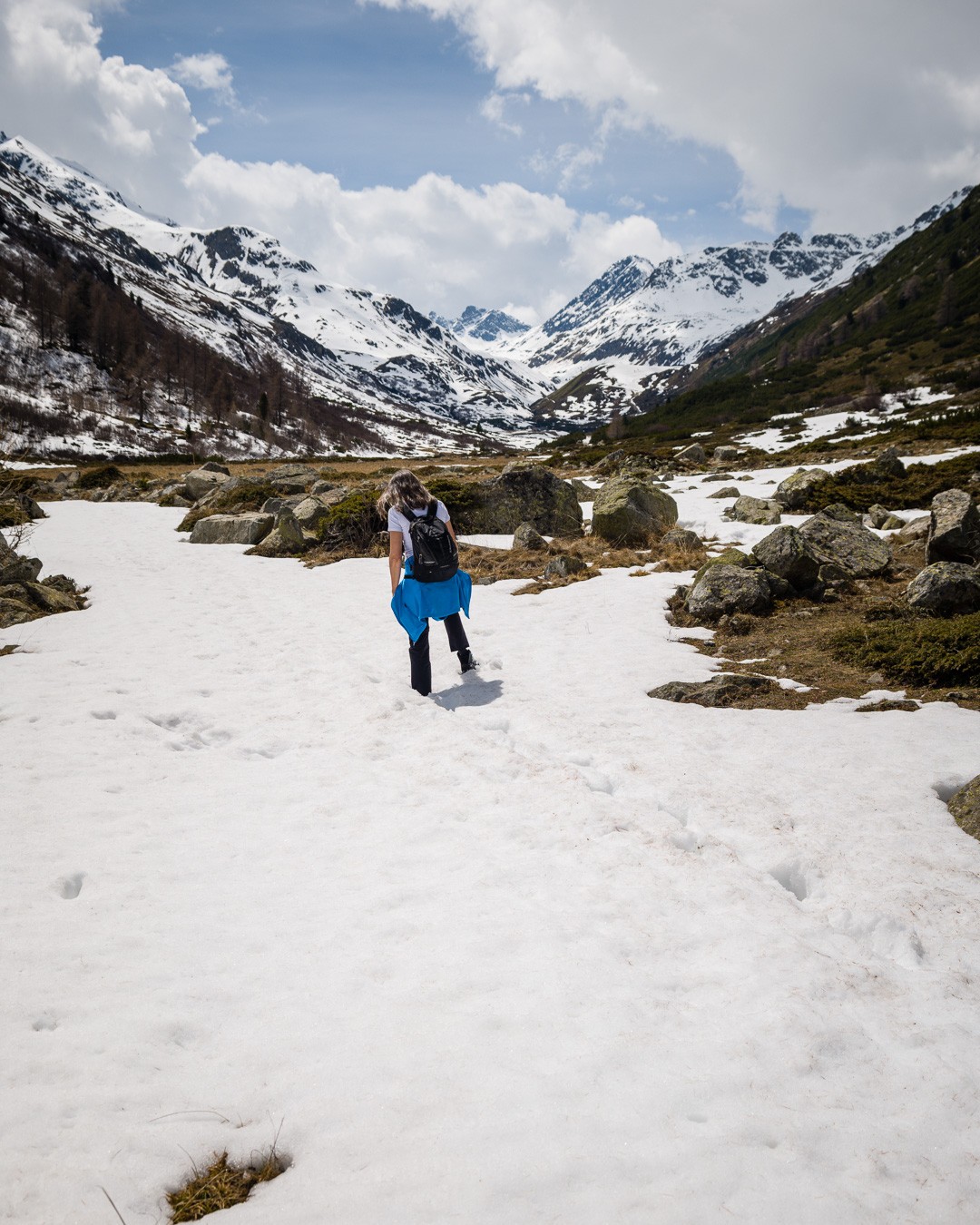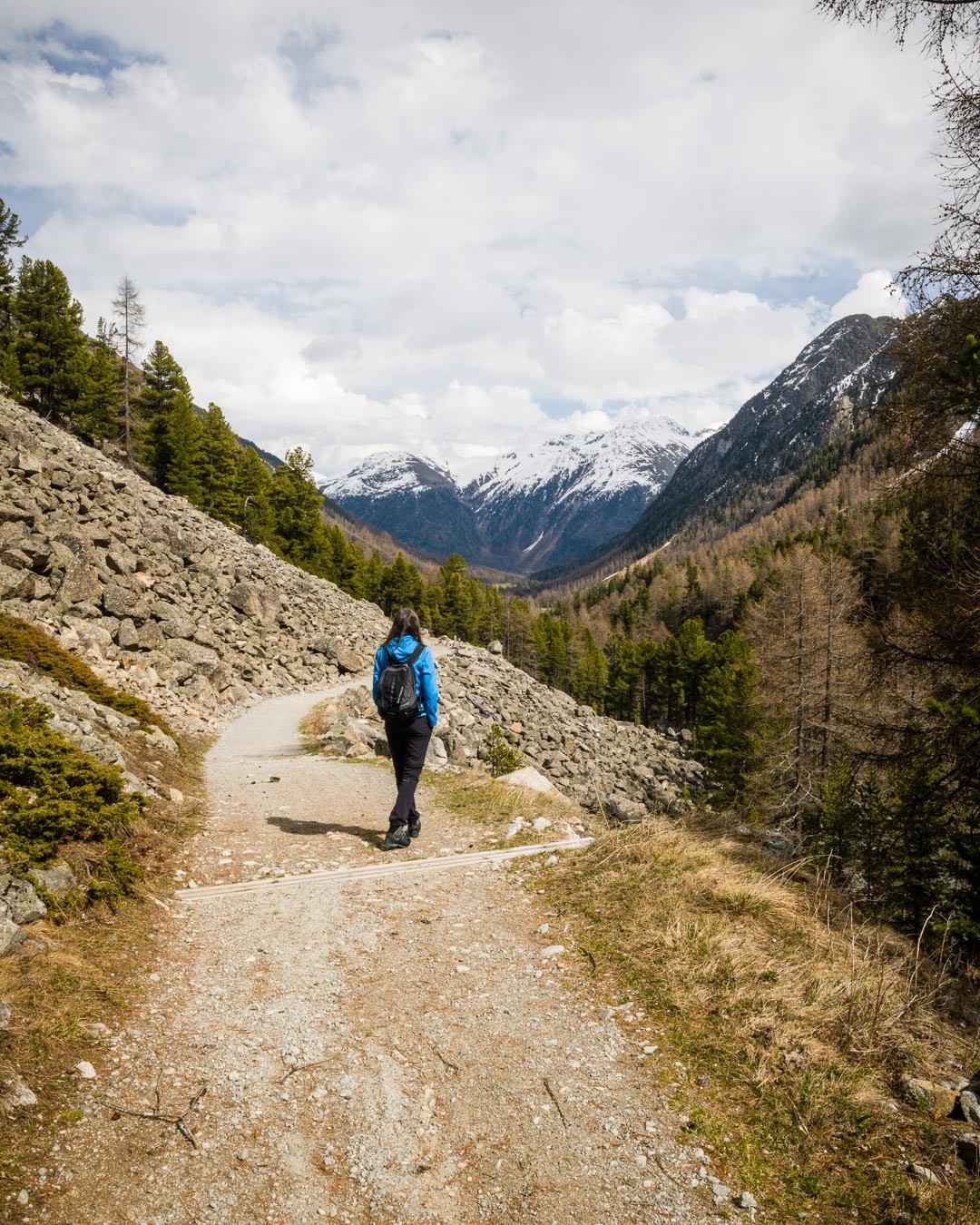 Von Spinas ins Val Bever bis zur Schneegrenze hinten im Tal. Viel rauschendes Wasser und Murmeltierpfiffe.