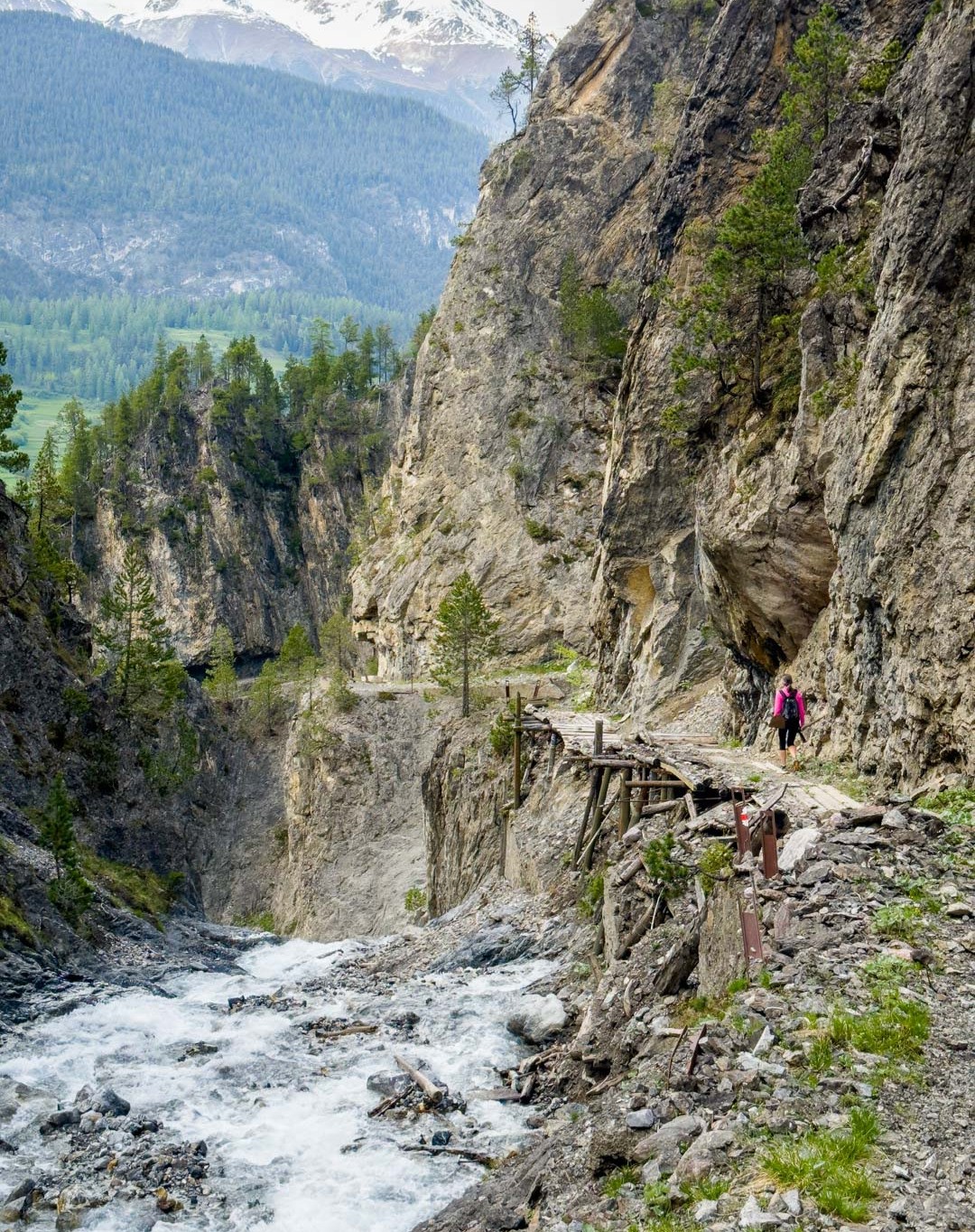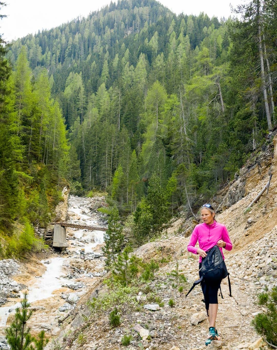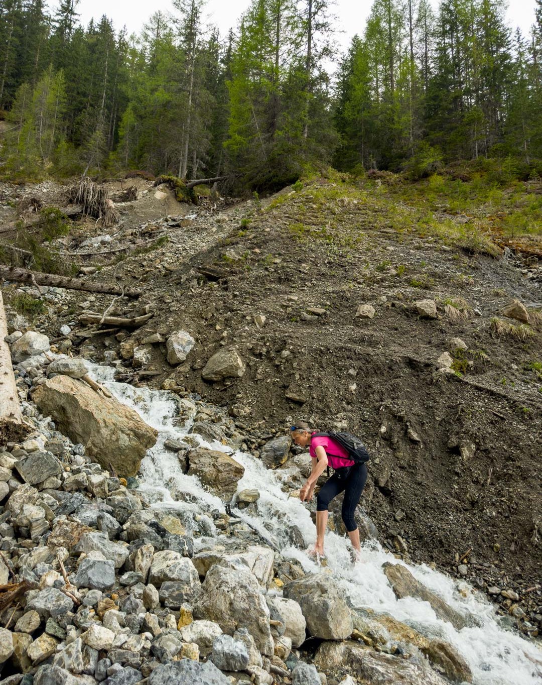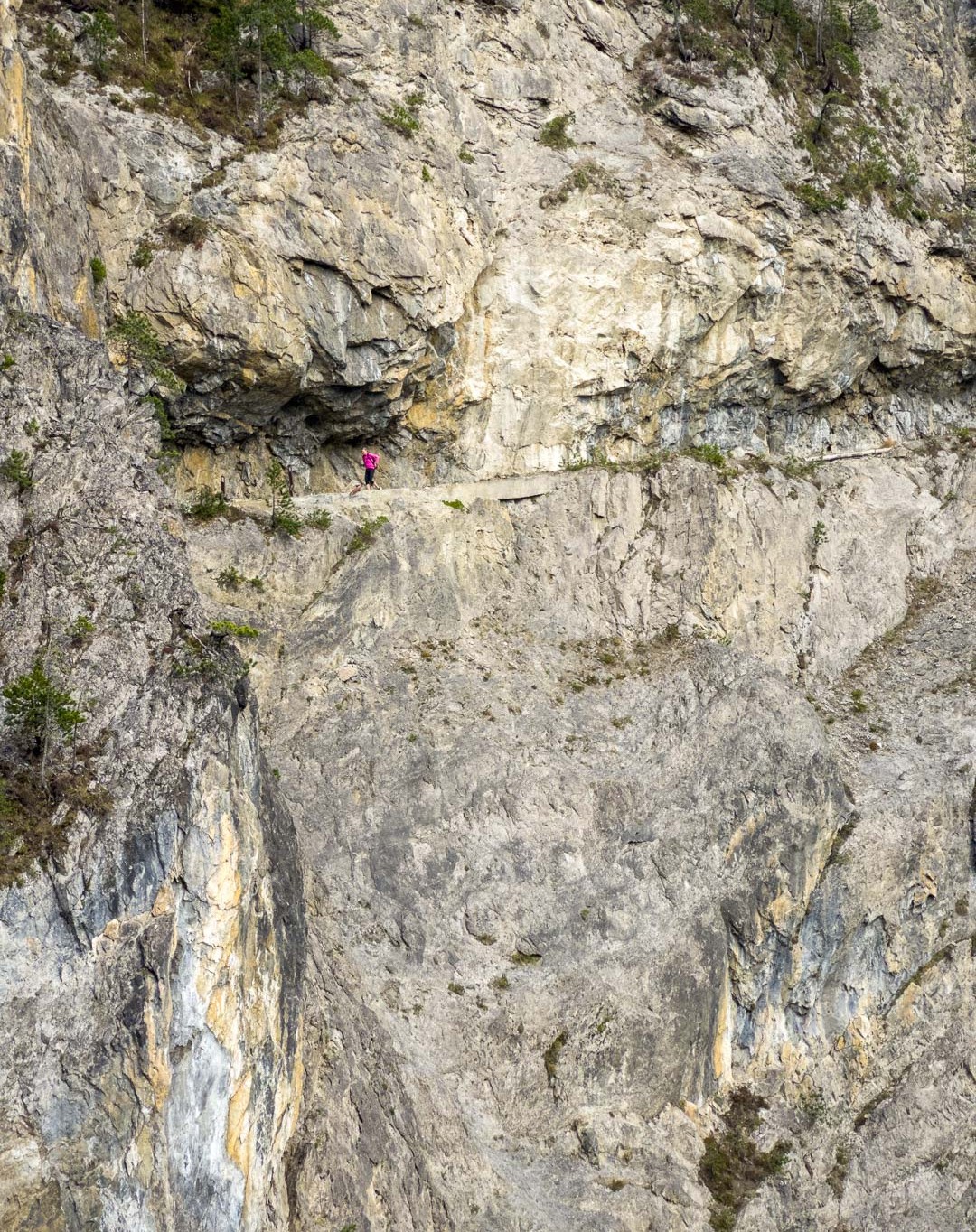 Aufstieg mit dem Mountainbike von Surava zur Alp Ozur und hinüber zur Alp Era. Von dort aufregende Bikeabfahrt ins Schaftobel bei Filisur. Der Weg war nach dem Winter noch ziemlich in Mitleidenschaft gezogen.