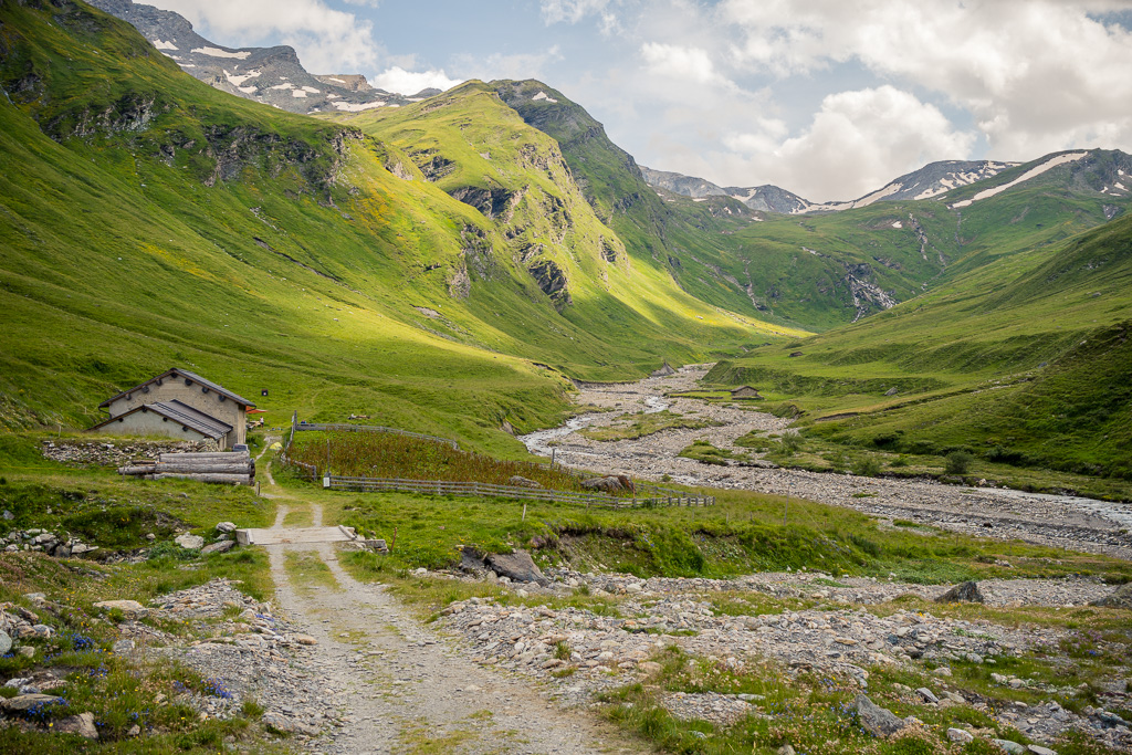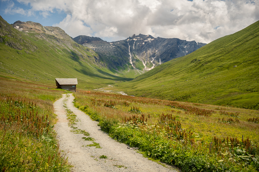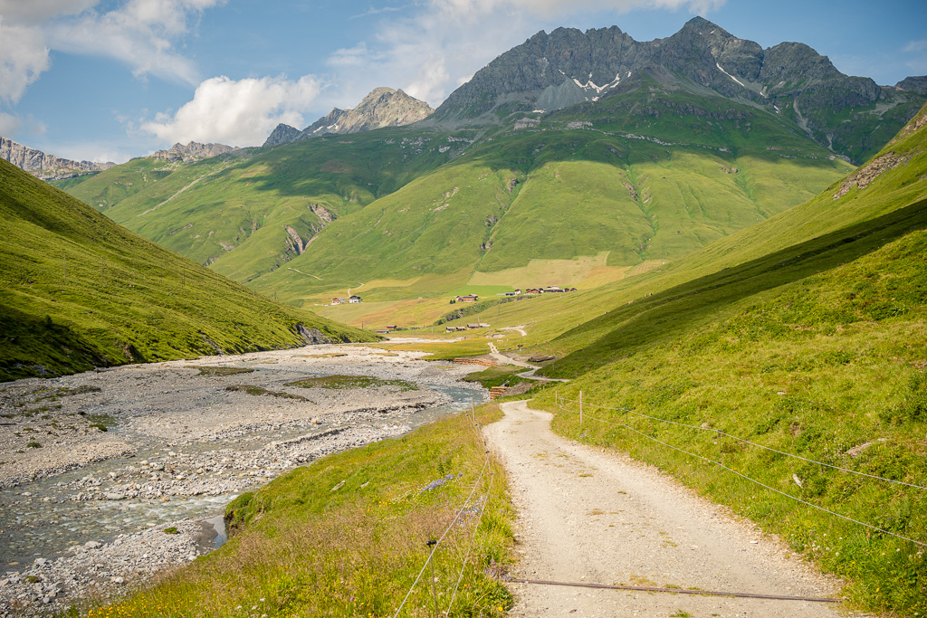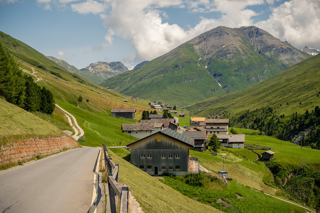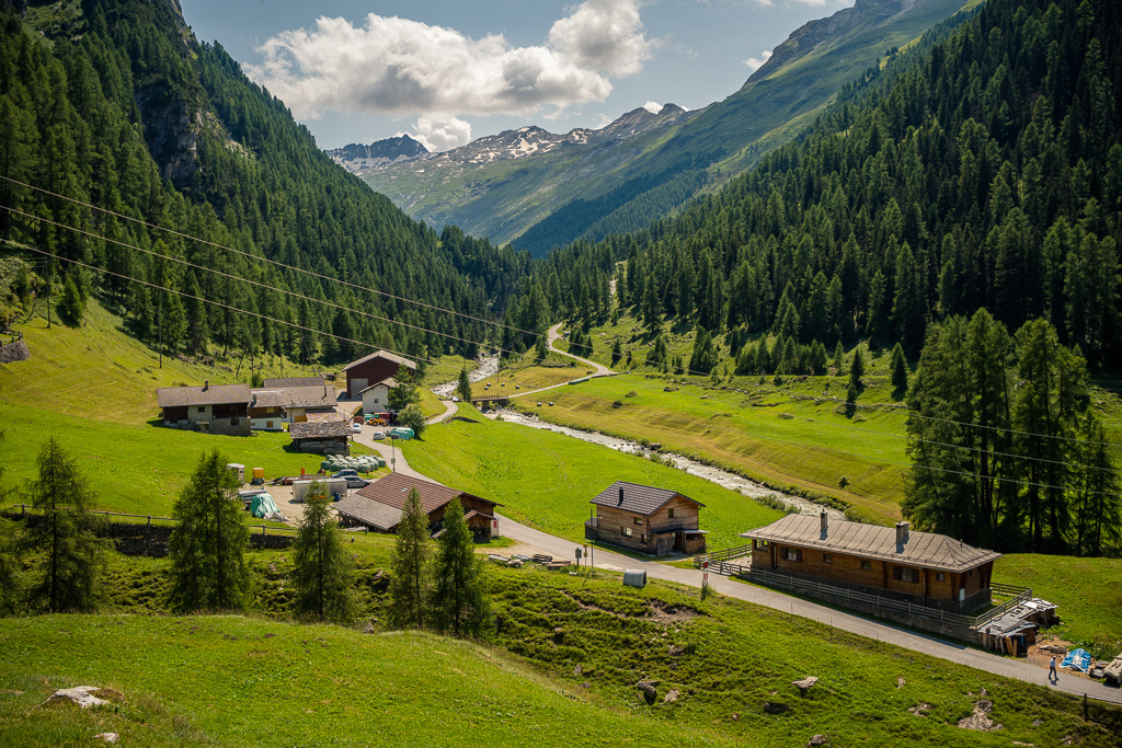 Diesmal habe ich auf dem Rückweg allerdings keinen Abstecher ins Val Madris wie beim letzten Mal gemacht, sondern bin stattdessen vom kleinen Weiler Juppa in ein anderes Seitental namens Bergalga hineingefahren. Am Ende des befahrbaren Alpwegs befindet sich die Alphütte Olta Stofel, die aktuell täglich von 11-17 Uhr bewirtet ist. Das Tal ist schön und einsam gelegen und dank der geringen Höhendifferenzen auch einfach zu durchfahren. Allerdings fand ich das bei der letzten Tour besuchte Val Madris landschaftlich wesentlich abwechslungsreicher, wenngleich auch länger und viel anstrengender.