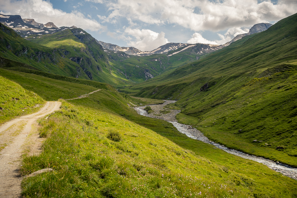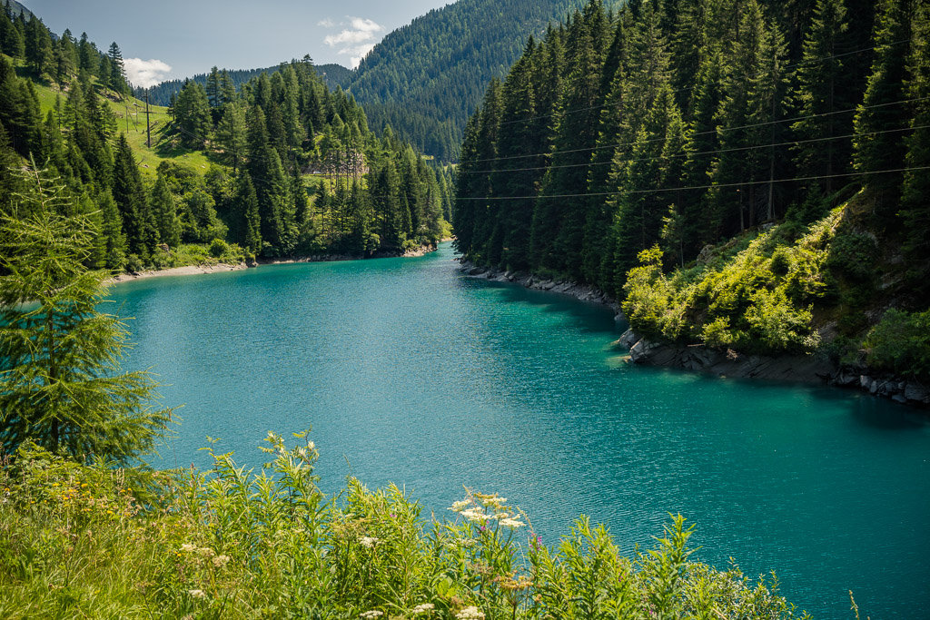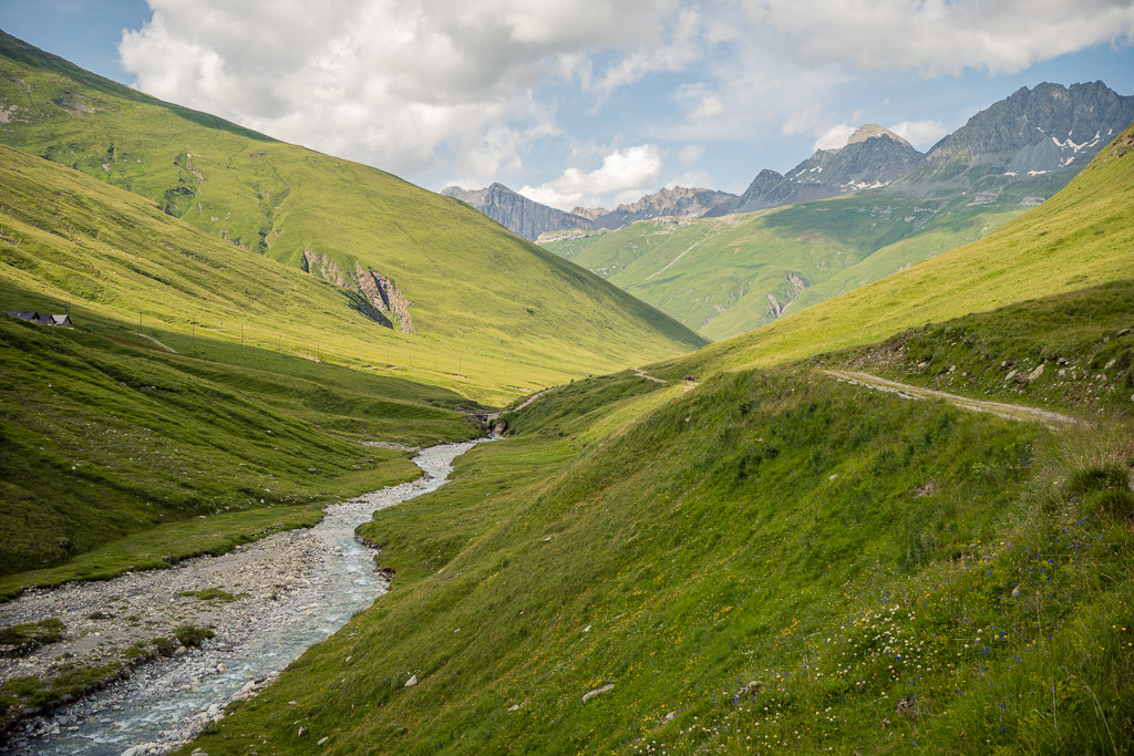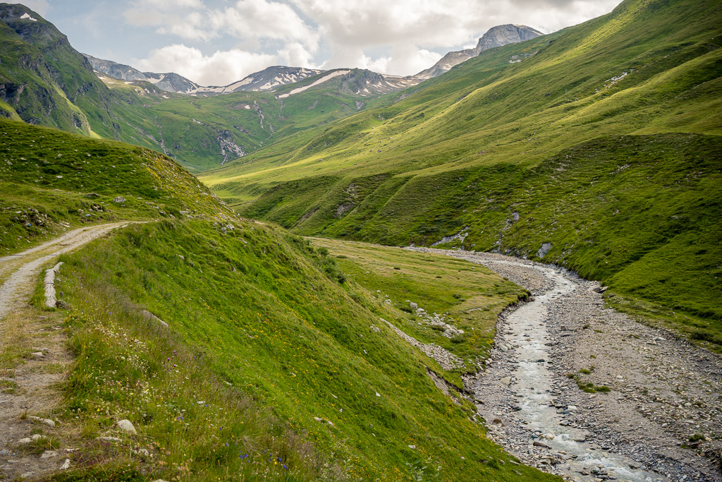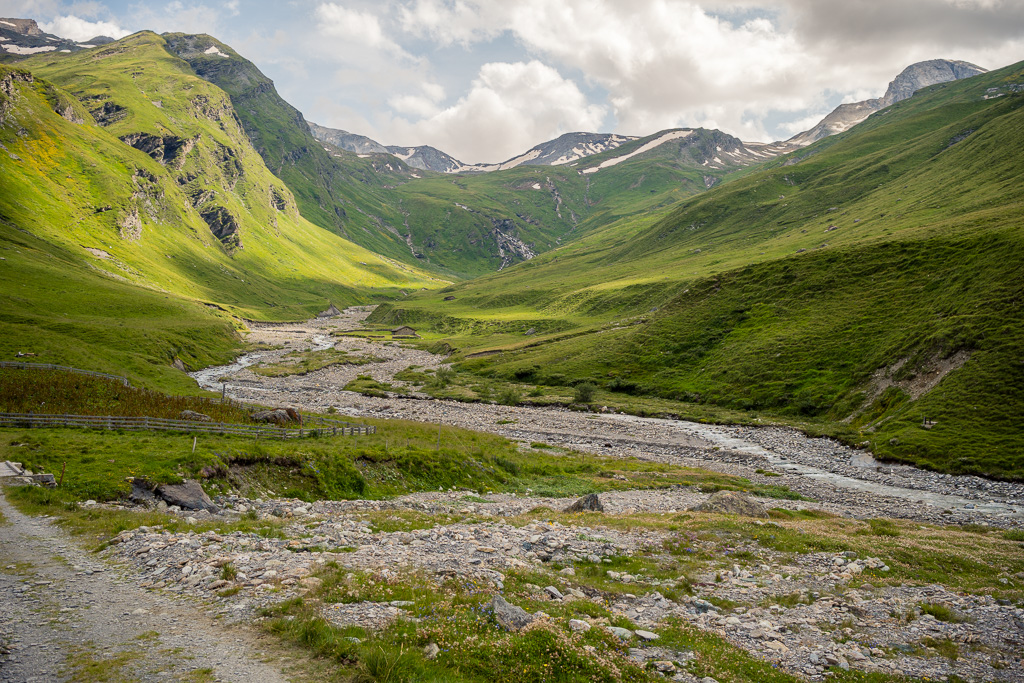 Diesmal habe ich auf dem Rückweg allerdings keinen Abstecher ins Val Madris wie beim letzten Mal gemacht, sondern bin stattdessen vom kleinen Weiler Juppa in ein anderes Seitental namens Bergalga hineingefahren. Am Ende des befahrbaren Alpwegs befindet sich die Alphütte Olta Stofel, die aktuell täglich von 11-17 Uhr bewirtet ist. Das Tal ist schön und einsam gelegen und dank der geringen Höhendifferenzen auch einfach zu durchfahren. Allerdings fand ich das bei der letzten Tour besuchte Val Madris landschaftlich wesentlich abwechslungsreicher, wenngleich auch länger und viel anstrengender.