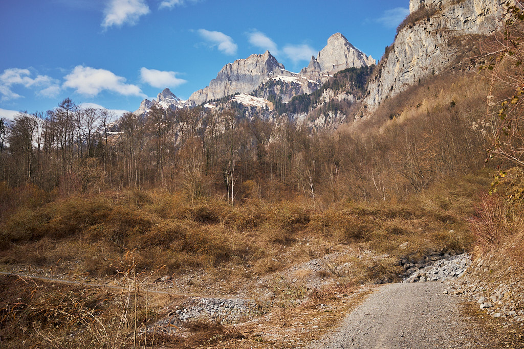 Wo ich beim letzten Mal kapitulieren musste, ging es diesmal nahtlos weiter ins Seeztal hinein und der Seez entlang in Richtung Walensee. Beim Fotografieren vor Flums hielt eine Polizeistreife neben mir an und wollte wissen, ob ich hier etwas suchen würde. Eine tiefgründige Frage, auf die mir verschiedene Antworten in den Sinn kamen. Mich beschäftigte in der Folge allerdings eher, ob ich inzwischen auch auf dem Rad schon einen etwas verhaltensauffälligen Eindruck mache.