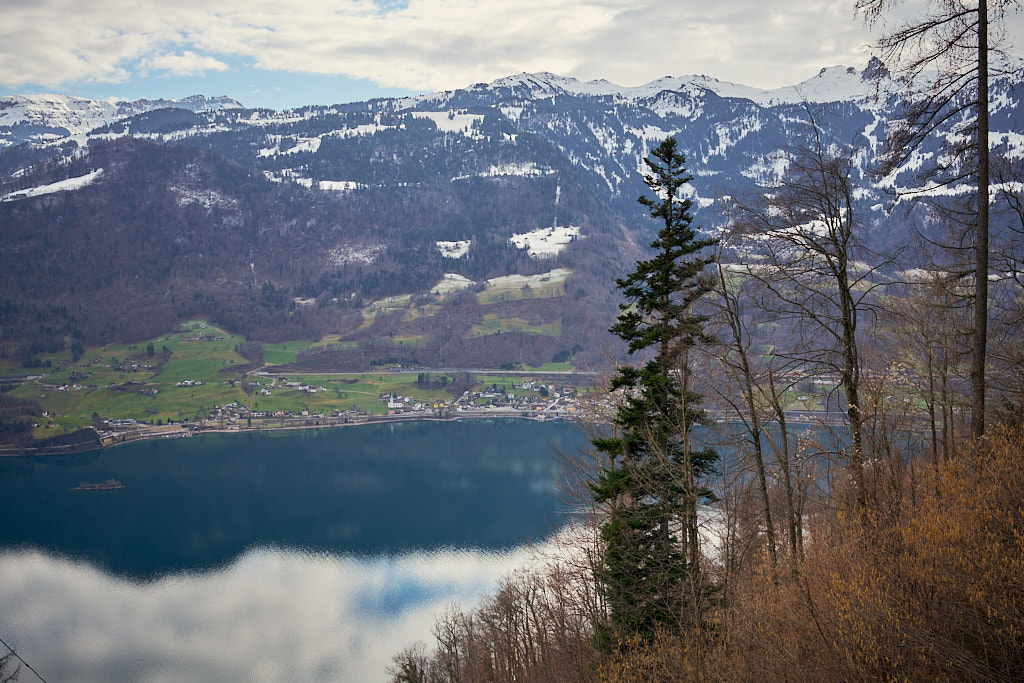 Nach Flums erreichte ich Walenstadt auf einem weiteren Radweg entlang der Hauptstrasse und bog bei der Kirche zum Aufstieg nach Walenstadtberg ab. Dieses – auf den Hängen der steil aufragenden Churfirsten gelegene – kleine Dorf hat für mich eine „historische” Bedeutung. Vor einem Vierteljahrhundert war dies nämlich der Schauplatz einer Tour mit meinem ersten Mountainbike – einem Cannondale Super V700. Modernste MTB-Technologie nach den Standards der Jahrtausendwende, die in der Folge mit mir als technisch völlig unbelastetem Fahrradanfänger im Gelände einige haarsträubende Abenteuer durchlebte.