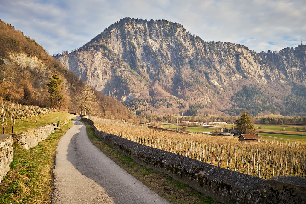 Für heute hatte ich ursprünglich auch eine (andere) Waldabfahrt nach Walenstadt angedacht. Vor Ort war diese unglücklicherweise wegen Holzschlag und Wegarbeiten für Wanderer und Radfahrer gesperrt, sodass ich stattdessen auf dem Hinweg wieder hinunterfuhr. Auch die Rückfahrt von Walenstadt durch das Seeztal nach Mels verlief auf der gleichen Strecke. Ich verliess sie dann aber vor Sargans, um wieder zum idyllischen Rheinuferweg zu gelangen. Ihm folgte ich bis nach Fläsch und über Maienfeld und Landquart zur östlichen, in der Nachmittagssonne gelegenen Seite des Churer Rheintals.