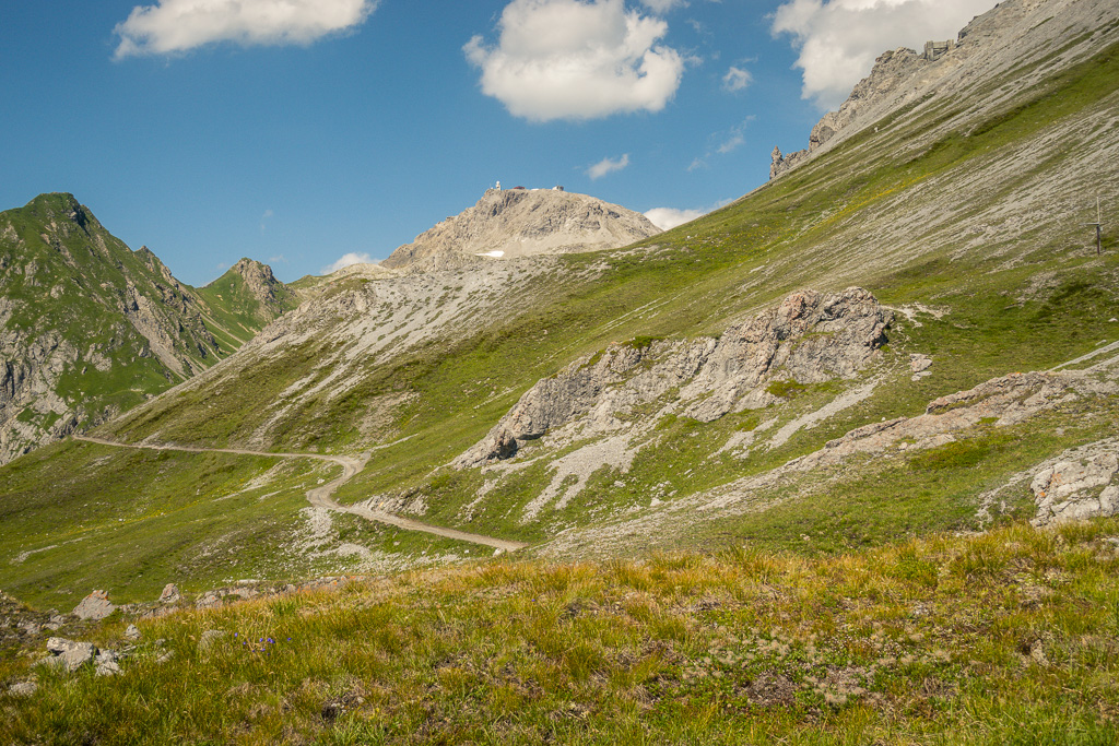 Von der Schatzalp auf einer Alpstrasse zur Strelaalp (Restaurant). Von hier entweder über den zunehmend holprigen Alpweg, oder den Abkürzungen für Wanderer folgend zum Strelapass.