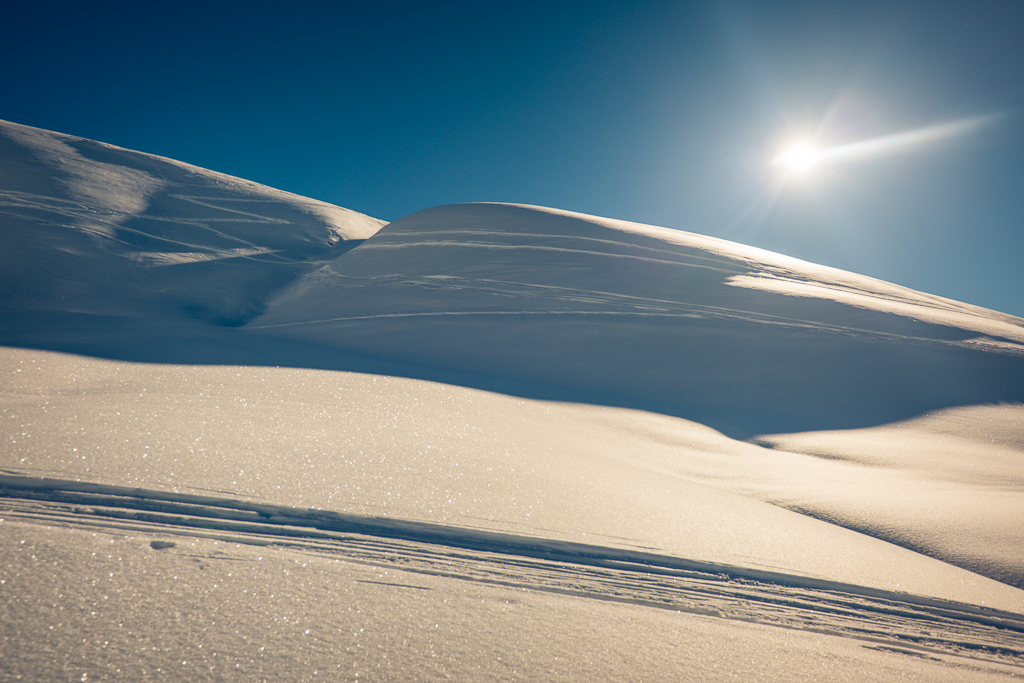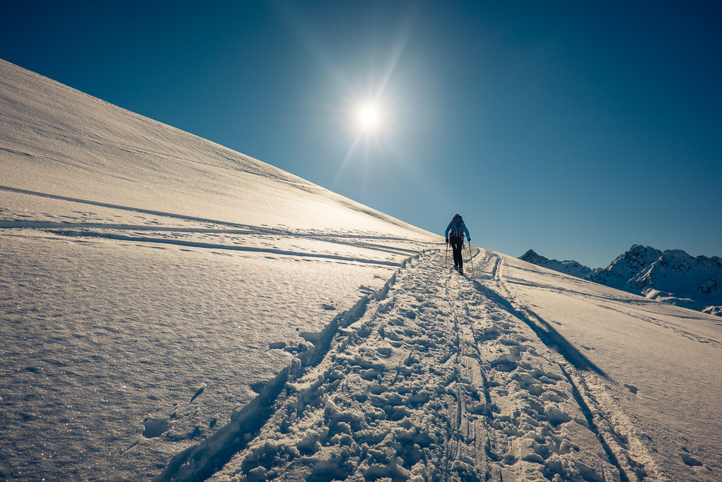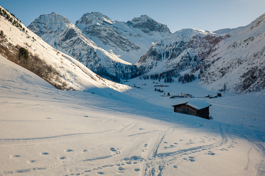 Einfache Schneeschuhtour, bei der man grösstenteils über sanfte Hänge absteigt. Besonders im Spätwinter zu empfehlen, wenn die Schneelage eine genussvolle Skiabfahrt ins Sertigtal nicht mehr zulässt. Ohne gute Orientierungs- und Navigationskenntnisse bei schlechtem Wetter oder Nebel nicht ratsam, da die Routenwahl auf den kilometerweiten offenen Schneehängen ohne Sicht heikel ist.