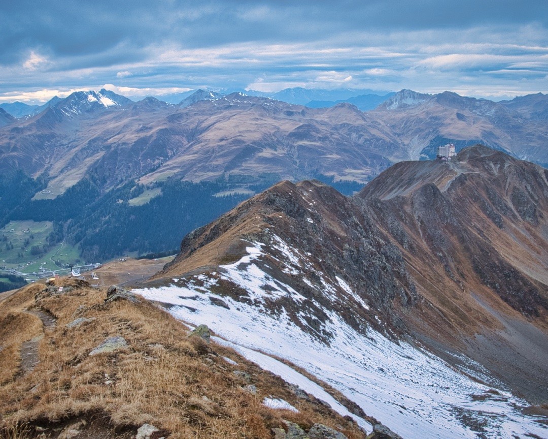 Vom Dischmatal aus durch das Rüedisch Tälli zur Tällifurgga. Weiter auf dem Gratweg zum Jakobshorn-Gipfel.
