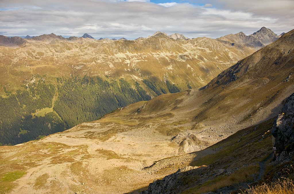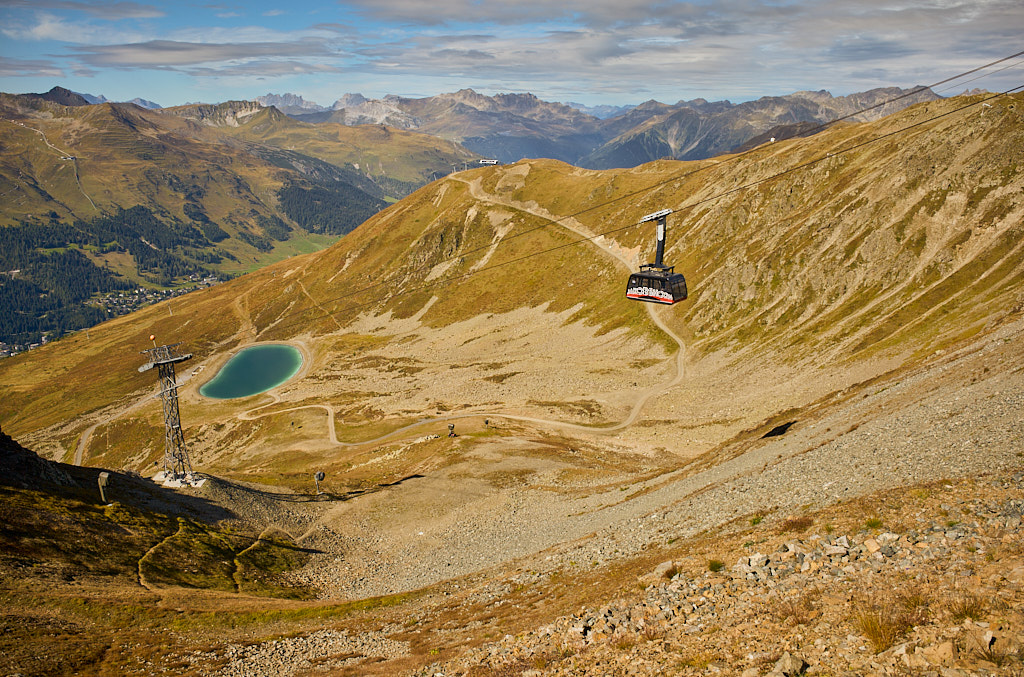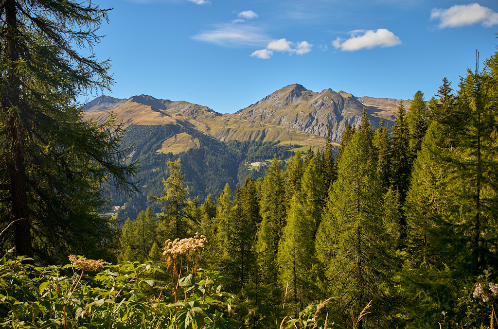 Spaziergang vom Jakobshorn zur Ischalp an einem Spätsommertag. Die Landschaft wird schon langsam herbstlich.