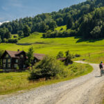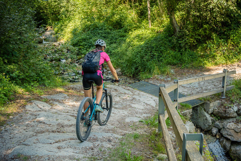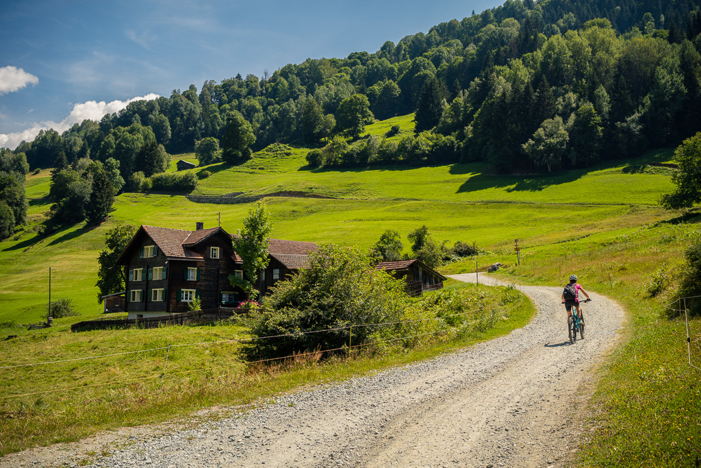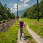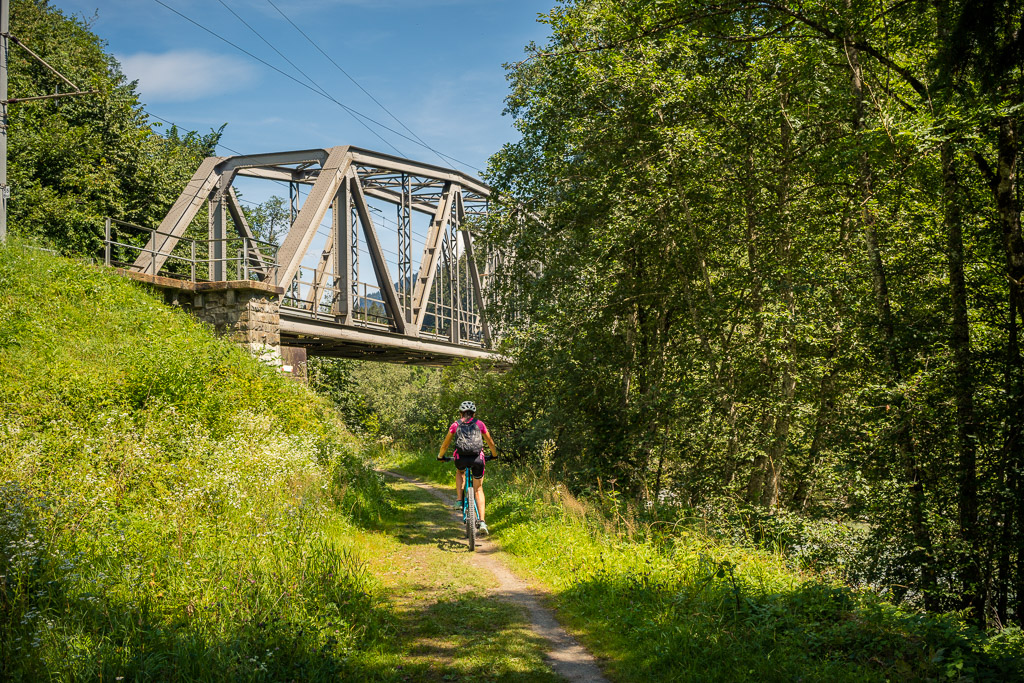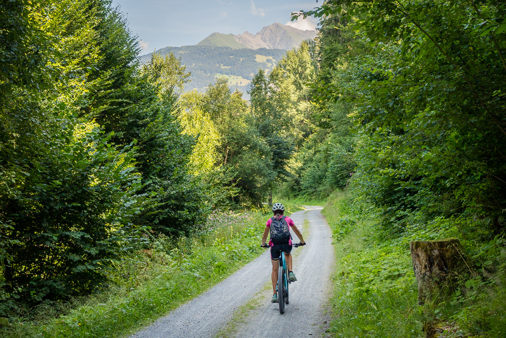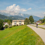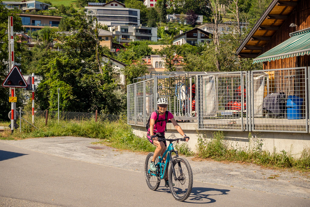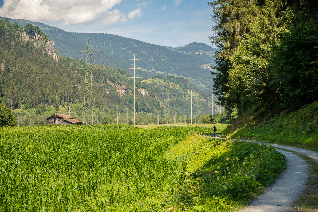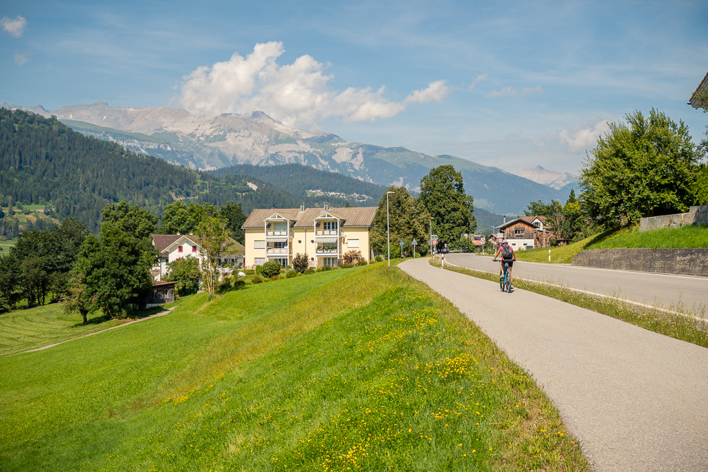 Kurz hinter der Aussichtsplattform zweigt der Radweg von der Strasse weg nach links in den Wald ab und wir sind das letzte, landschaftlich ebenfalls sehr schöne Stück bis nach Bonaduz auf Feldwegen zurückgerollt. Von dort ging es im leider sehr dichten Feierabendverkehr noch ein Stück weiter zum Ausgangspunkt am Bahnhof Reichenau. Je nach Uhrzeit ist es besser, bei Abendstau nicht die Autobahneinfahrt Reichenau für die Heimfahrt anzusteuern, sondern auf der Landstrasse via Bonaduz zur Einfahrt Rothenbrunnen zu fahren.