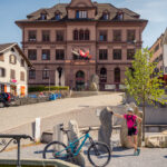 Parkplatz beim Bahnhof Reichenau/Tamins. Von hier aus mit dem Zug nach Disentis.