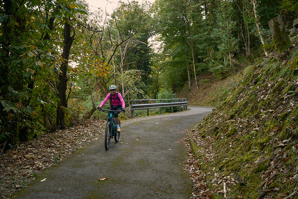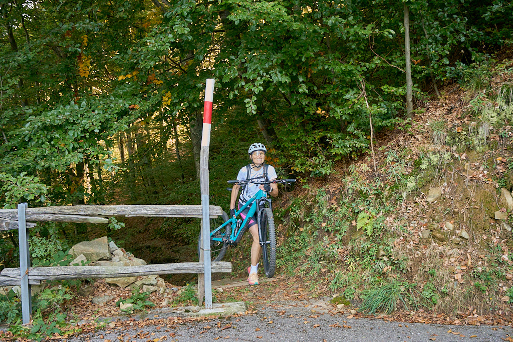 Für die nur wenig mehr als einen Kilometer lange Wegstrecke hatten wir eine gefühlte Ewigkeit gebraucht, bis wir am anderen Ende auf der Strasse von Monti di Gerra wieder aus dem dichten Wald ans Tageslicht traten. Das Ganzkörpertraining wurde nun immerhin mit einer schönen und langen Abfahrt nach Ronco belohnt.