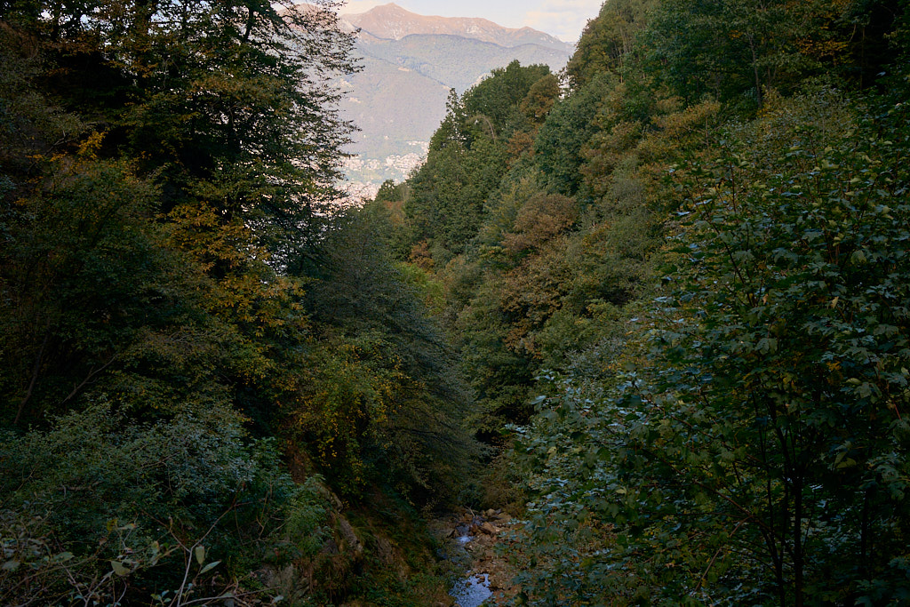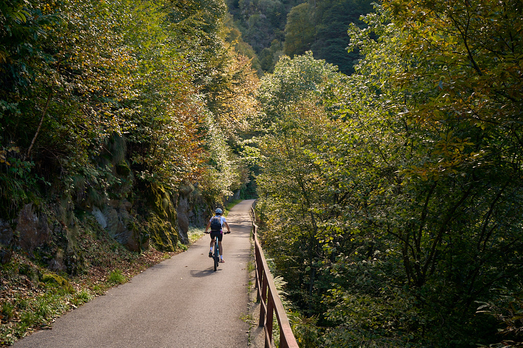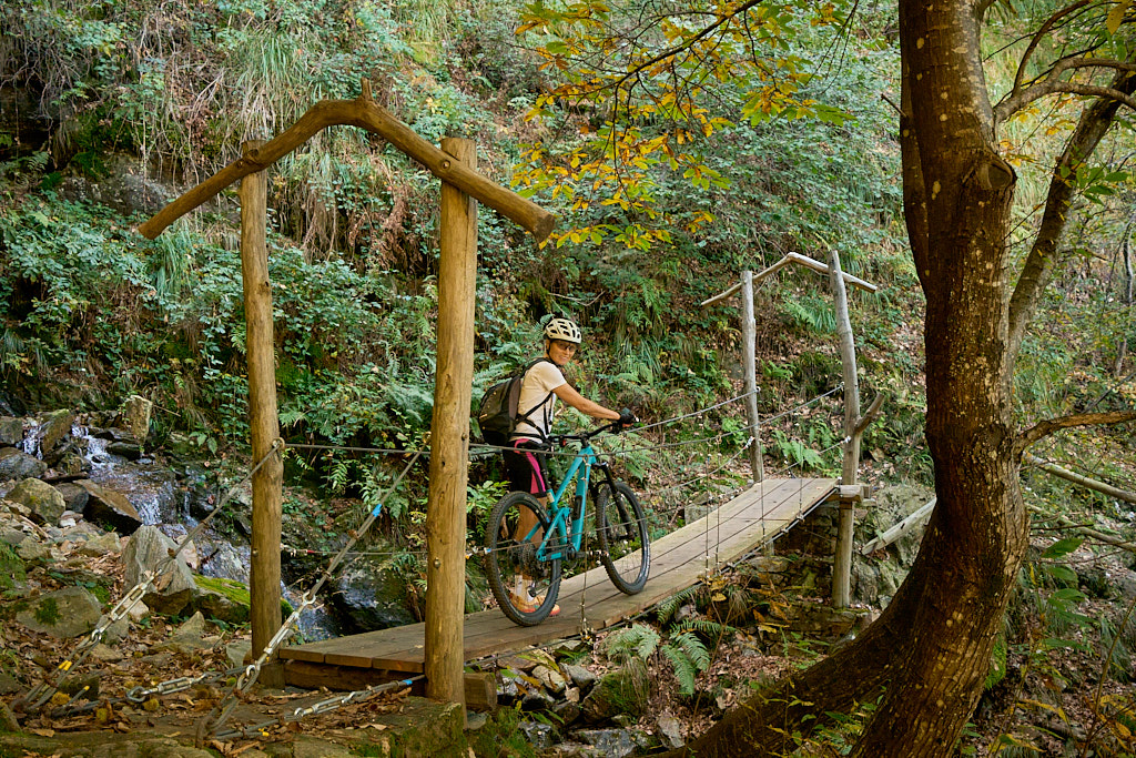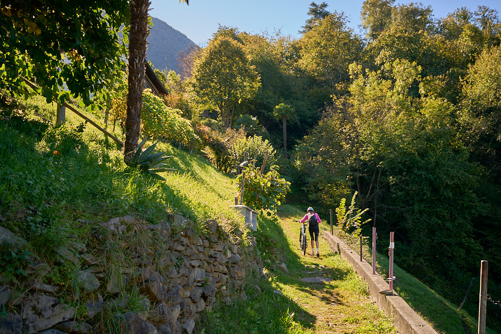 Zwischen Magadino und Vira gab es auf unserer Höhe keine durchgehende Strassenverbindung. Stattdessen mussten wir das kurze Stück zwischen den beiden Dörfern auf einem Wanderweg durch eine kleine Schlucht schiebend zurücklegen.