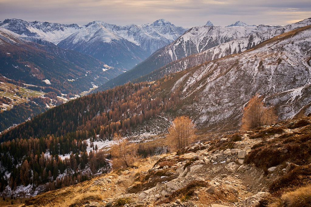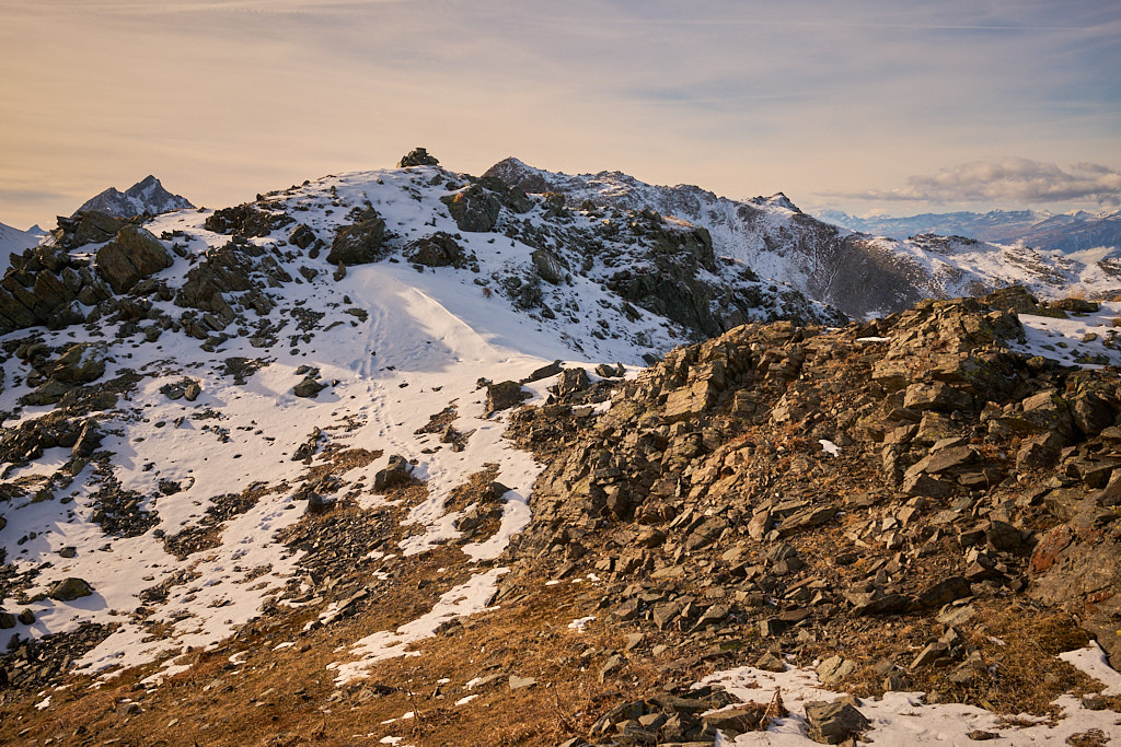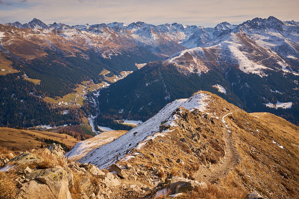 Der Aufstieg war grösstenteils schneefrei. Die Nordosthänge in Richtung Strelapass waren etwa knöcheltief verschneit, ebenso weite Teile vom Stafler Berg auf der anderen Seite. Da ich nur Halbschuhe trug und nasse Socken vermeiden wollte, bin ich anschliessend wieder auf dem Hinweg abgestiegen.