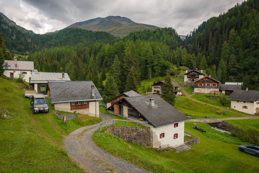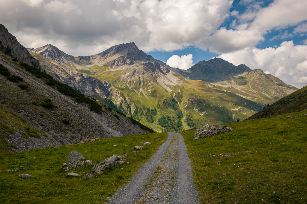 Weiter geht es durch das lange Tal von Val da Ravais-ch. Rechterhand konnten wir auf den Bergflanken grosse Schafherden sehen, die in Einerkolonnen dem Hang entlang zogen. Unten im Tal treffen wir dann auf einen Alpweg und etwas später auf die ersten Hütten von Chants und später Punts d’Alp (Haltestelle von Wanderbus). Ab hier wird der Fussmarsch auf der Asphaltstrasse eher monoton und zieht sich für die restlichen Kilometer bis nach Bergün etwas in die Länge. Die Gedanken kann man währenddessen aber trotzdem zu den Bergseen und der herrlichen Landschaft am Sertigpass zurückschweifen lassen…