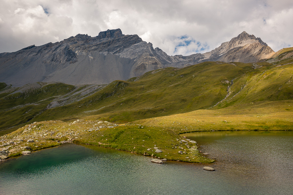 Über Weiden absteigend erreichen wir als nächstes die Bergseen Lais da Ravais-ch Sur und Suot. Aus diesen entspringt auch der Bach Ava da Ravais-ch, dessen Rauschen uns auf dem Rest der Wanderung begleiten wird.