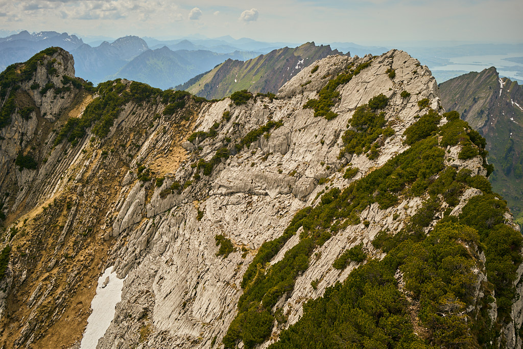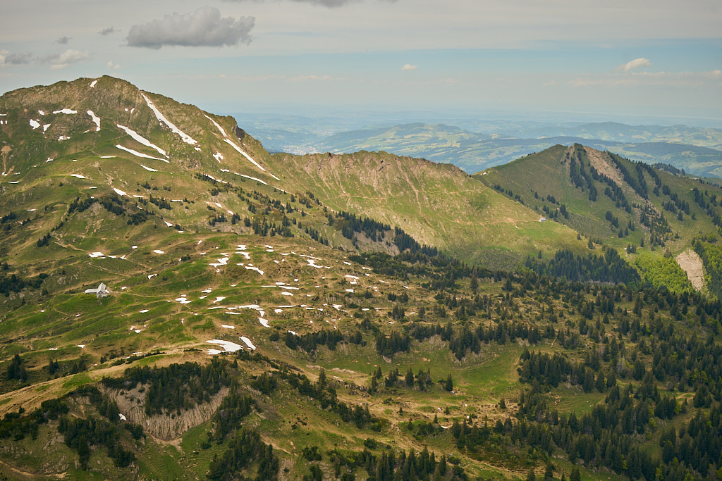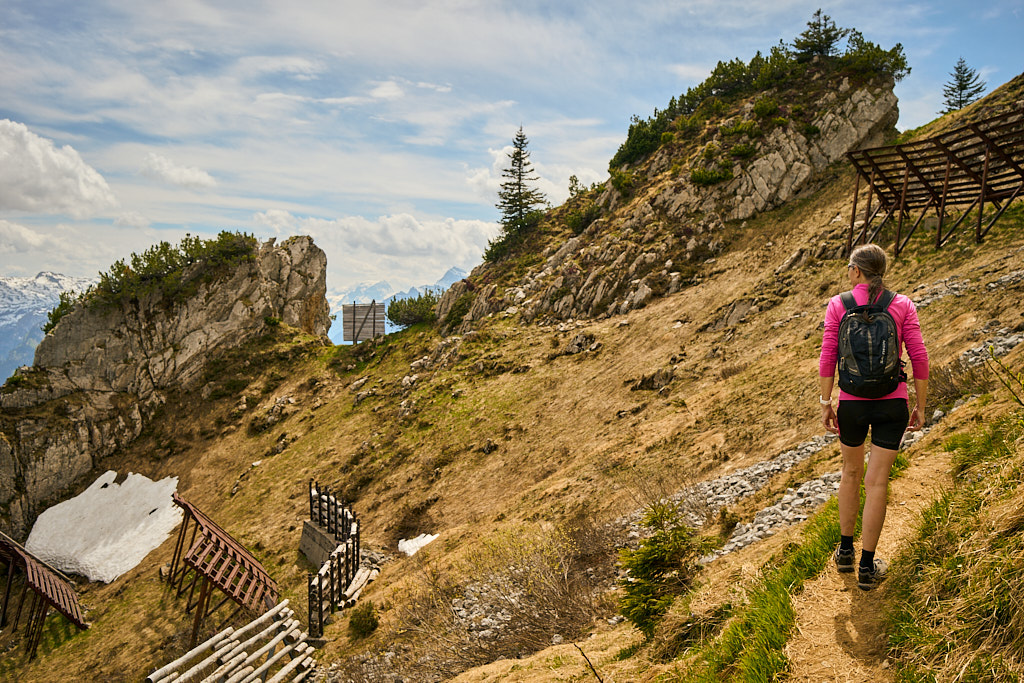 Oben angekommen, entschädigte die phänomenale Rundumsicht für die Gedächtnislücken. Der Blick reichte nach Norden bis zum Bodensee und dem dahinterliegenden deutschen Flachland. Im Osten thronte der majestätische Säntis, davor zeichneten sich die Dörfer im Toggenburg, der Übergang ins Rheintal und die unzähligen Gipfel in der Vorarlberger Grenzregion klar ab. Im Westen glitzerte der Zürichsee mit dem Seedamm zwischen Pfäffikon und Rapperswil. Und im Süden schliesslich blickten wir hinab auf Amden, die imposanten Churfirsten, den türkisblau schimmernden Walensee und die teils noch schneebedeckten Glarner Alpen. Ein Fest für die Augen, das die Beine fast vergessen liess.