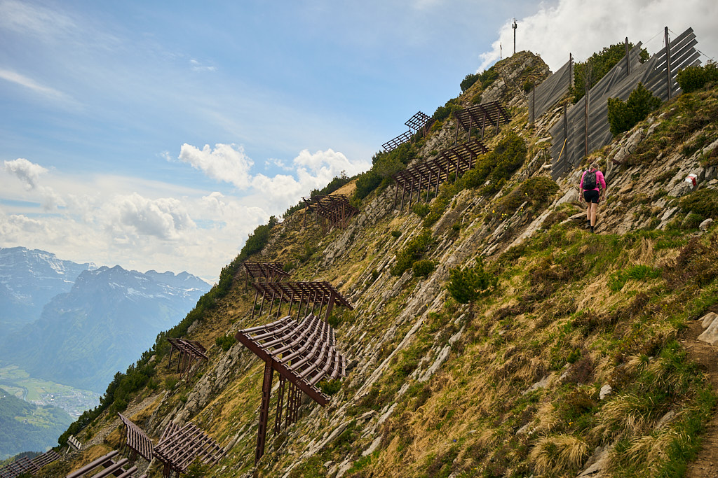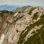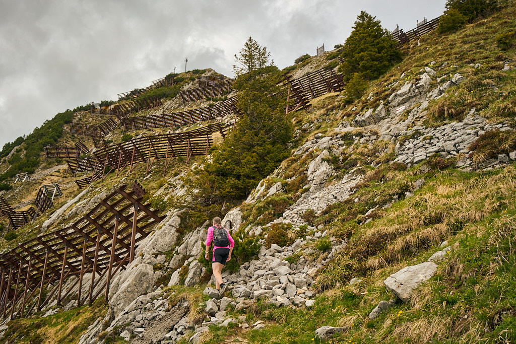 Auf dem Weg zum Gipfel musste ich allerdings eine verblüffende Feststellung machen: Jegliche Erinnerung an meine früheren Touren auf demselben Pfad war völlig abhandengekommen. Ich konnte mich wirklich an kein einziges Detail am Wegrand erinnern – ausgenommen die zahllosen Lawinenverbauungen, die offenbar nachhaltigeren Eindruck hinterlassen hatten als die umliegende Flora und Fauna. Im Gipfelbereich wurde das Gelände zunehmend steiler, und die letzten paar Dutzend Meter auf dem Grat zum Gipfelkreuz waren mit Ketten gesichert. Auch daran? Völlige Amnesie. Das Gehirn hatte hier wohl selektiv geputzt.