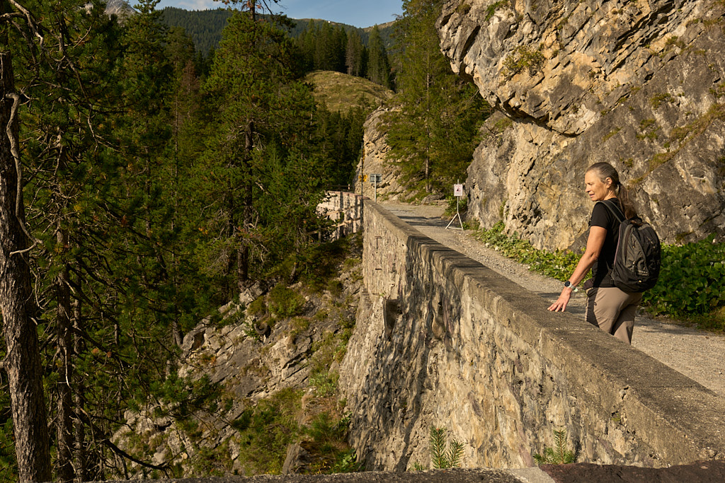 Kleiner Spaziergang zum Bahnhof von Davos Wiesen und über den Mobilitätsweg nach Valdanna. Die Zügenschlucht scheint jetzt nicht mehr gesperrt zu sein; nur noch ein Hinweisschild warnt vor der Steinschlaggefahr.