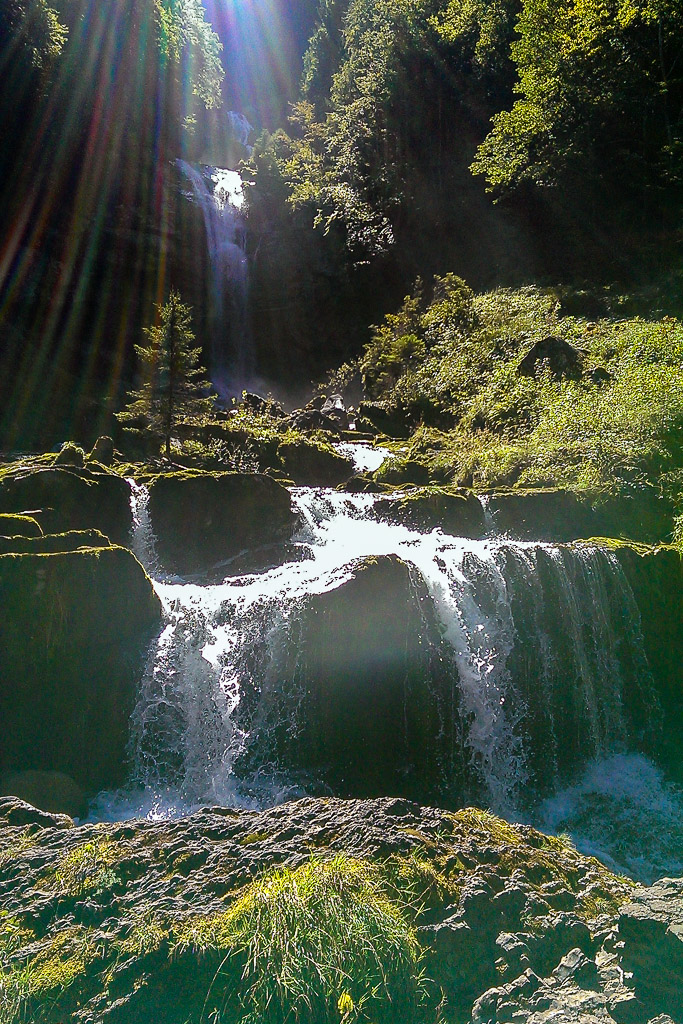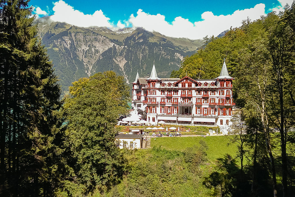 Von Grindelwald aus auf Velowegen abseits der Strasse hinunter nach Zweilütschinen. Nördlich vom Bahnhof geht es auf einer Nebenstrasse weiter nach Gsteigwiler und Wilderswil. Hier auf Nebenstrassen weiter bis kurz vor Bonigen, dann zunächst der Autobahn und dann dem Seeufer entlang bis Iseltwald. Schöne Strecke mit einigen kurzen knackigen Anstiegen zu den Giessbachfällen. Bis zum Seeende und an einem Flugplatz vorbei, stets den Radwegen folgend, nach Meiringen.