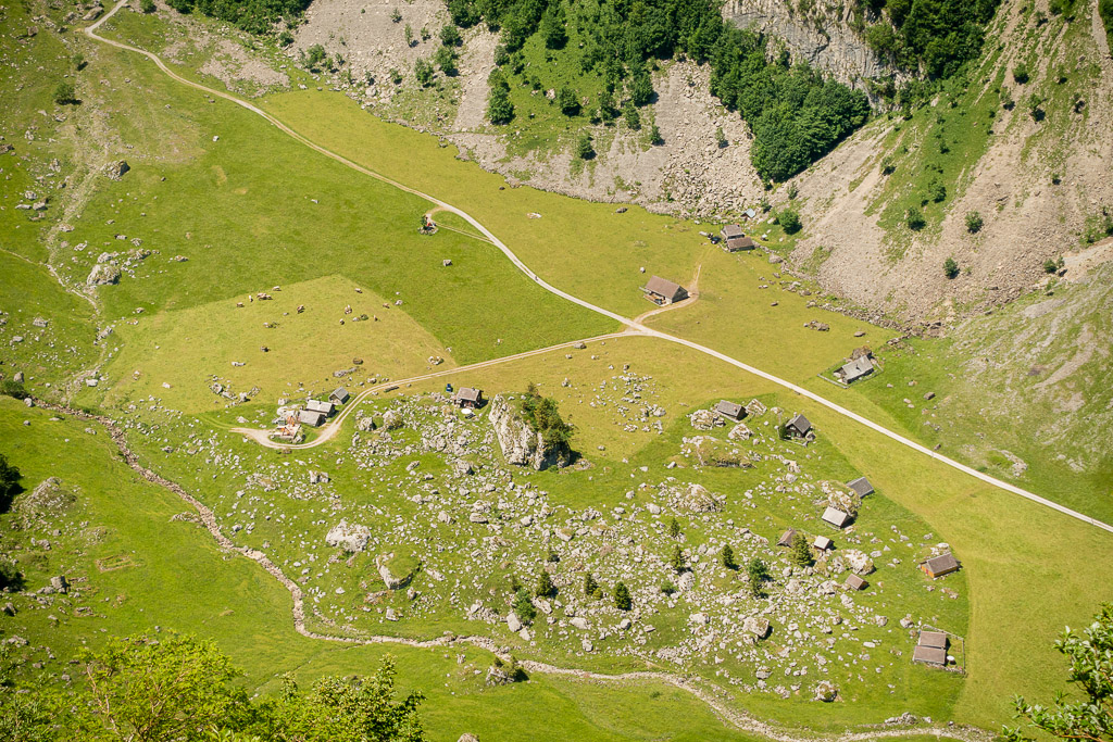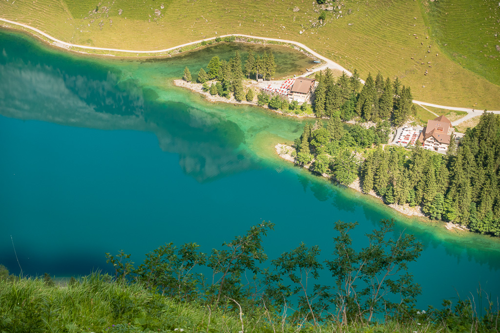 Am Seeufer entlang (Bademöglichkeiten) zum östlichen Seeende. Von dort entweder auf der Fahrstraße hinunter nach Wasserauen, oder wieder leicht ansteigend auf breiten Alpweg zur Alp Gross-Hütten und weiter nach Klein-Hütten. Ab hier wieder auf den Aufstiegsweg zurück zum Parkplatz.