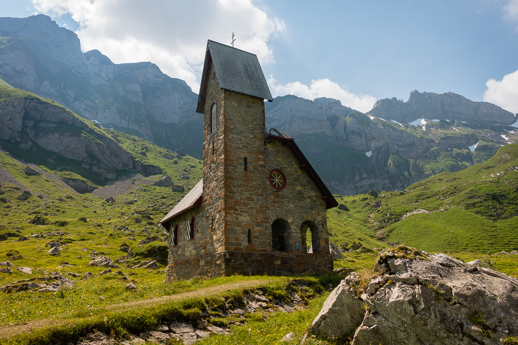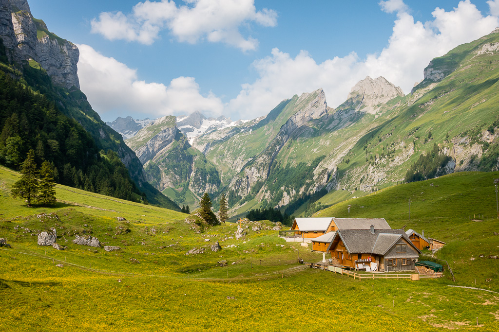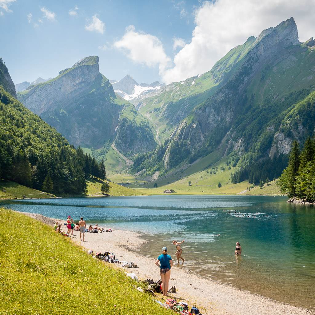 Wanderung zu einer idyllischen Alpsiedlung am Fuß des Säntis mit Bademöglichkeit im Bergsee.