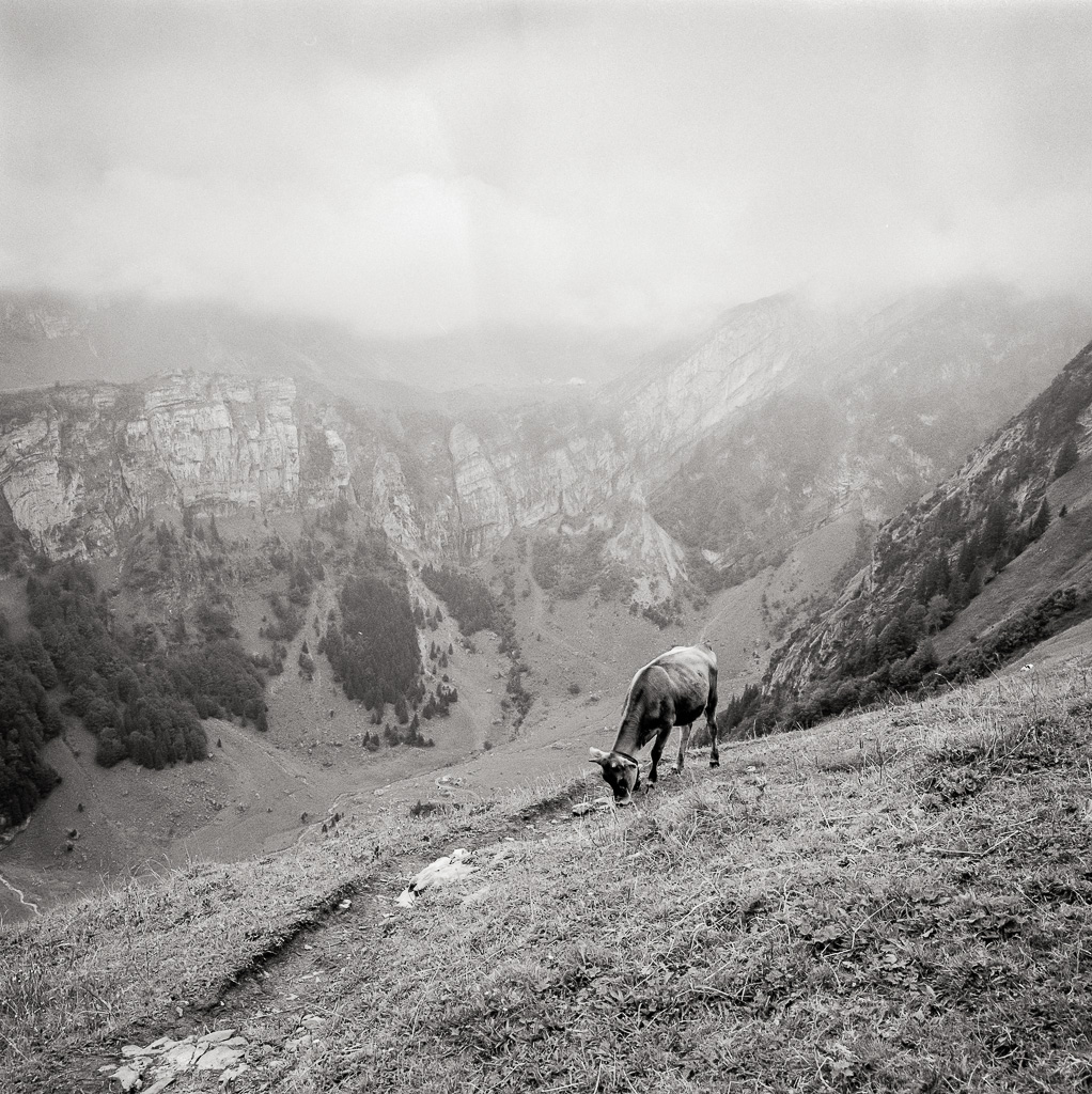 Von der Ebenalp in großem Bogen über offene Weideflächen zum Wildkirchli absteigen. Der Weg führt über Stufen durch eine beeindruckende große Höhle und danach unter hohen Felswänden entlang zum bekannten Gasthaus Äscher (bewirtschaftet).